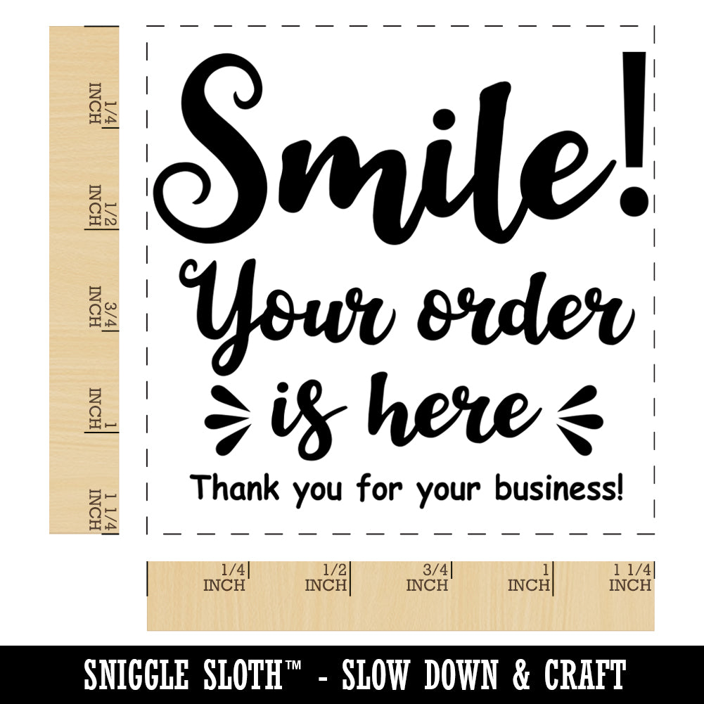 Smile Your Order is Here Cute for Businesses Square Rubber Stamp for Stamping Crafting
