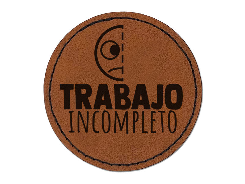 Trabajo Incompleto Incomplete Work Spanish School Round Iron-On Engraved Faux Leather Patch Applique - 2.5 Inch