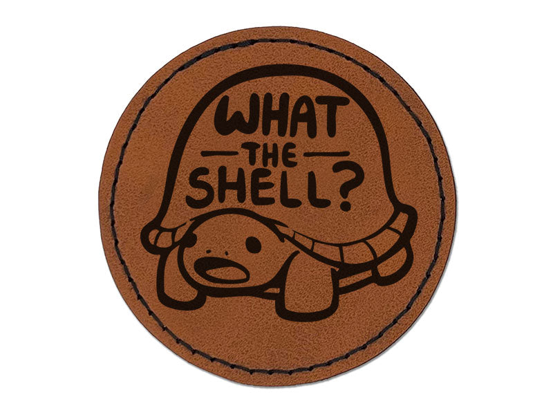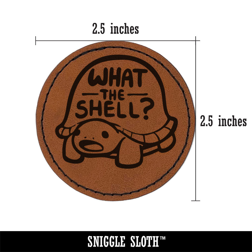 What the Shell Surprised Shocked Turtle Cute Round Iron-On Engraved Faux Leather Patch Applique - 2.5 Inch