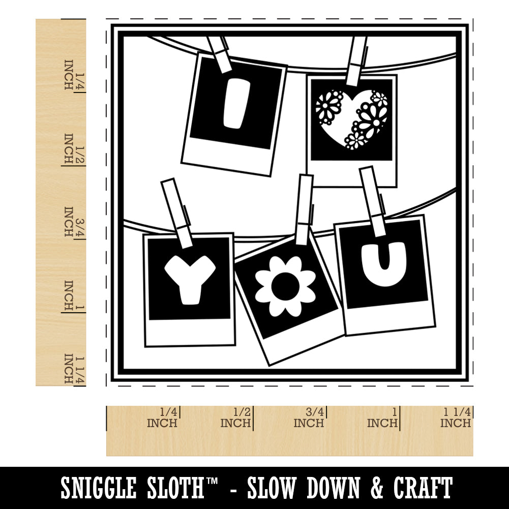 I Love You Instant Photographs Hanging from Line Square Rubber Stamp for Stamping Crafting