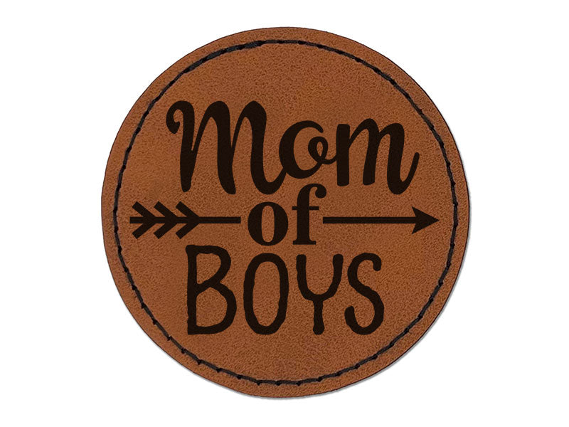 Mom of Boys Mother's Day Arrow Round Iron-On Engraved Faux Leather Patch Applique - 2.5 Inch