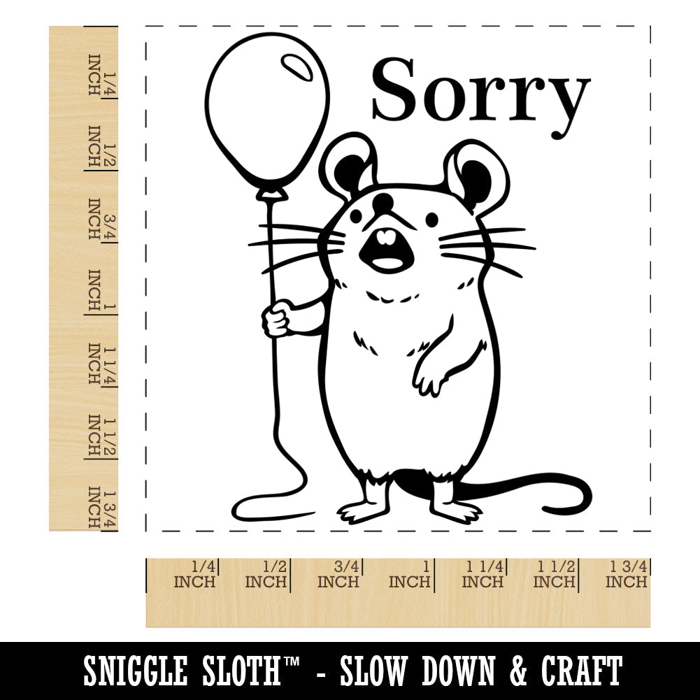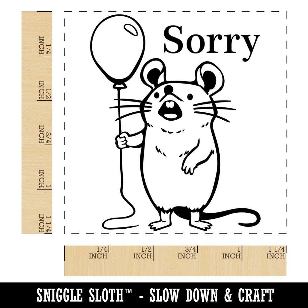 Sorry Mouse with Balloon Square Rubber Stamp for Stamping Crafting