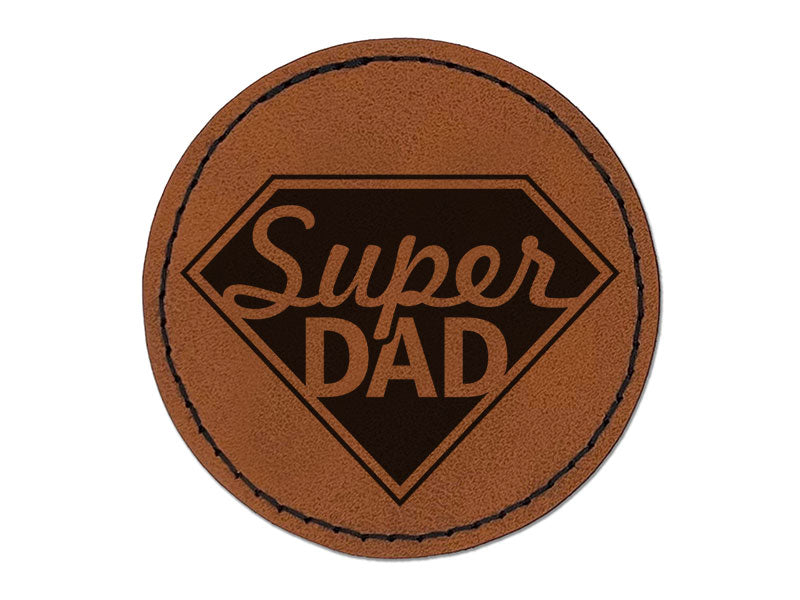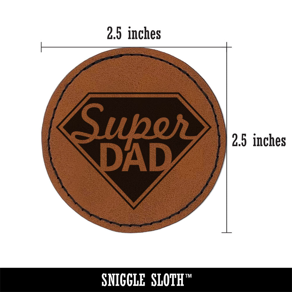Super Dad Father's Day Superhero Diamond Round Iron-On Engraved Faux Leather Patch Applique - 2.5 Inch