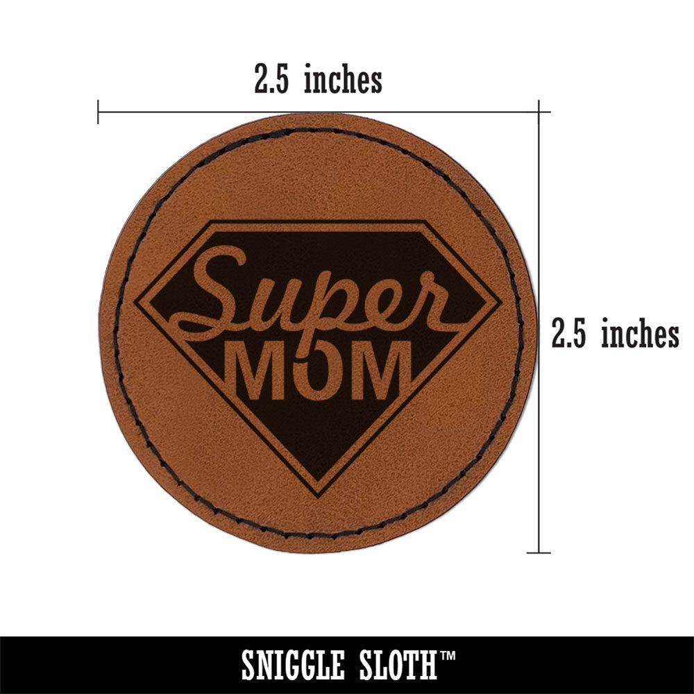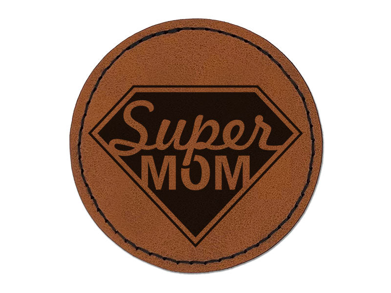 Super Mom Mother's Day Superhero Diamond Round Iron-On Engraved Faux Leather Patch Applique - 2.5 Inch