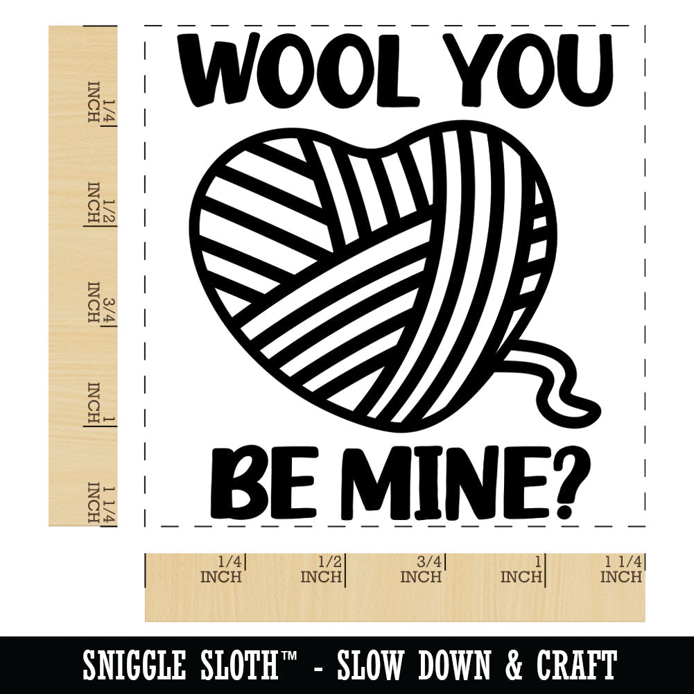 Wool Will You Be Mine Heart Yarn Love Valentine's Day Square Rubber Stamp for Stamping Crafting