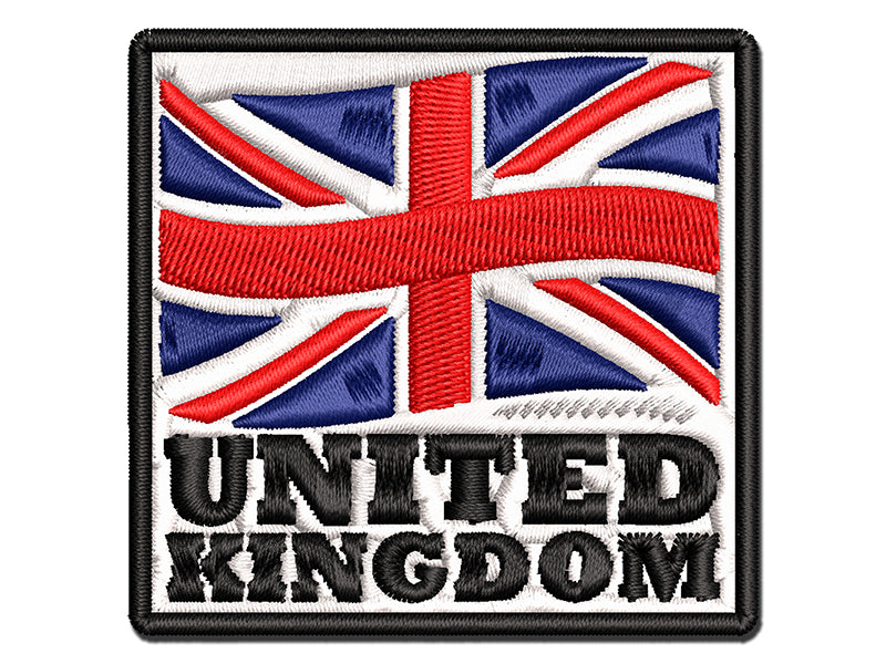 United Kingdom with Waving Flag Union Jack Cute Multi-Color Embroidered Iron-On or Hook & Loop Patch Applique