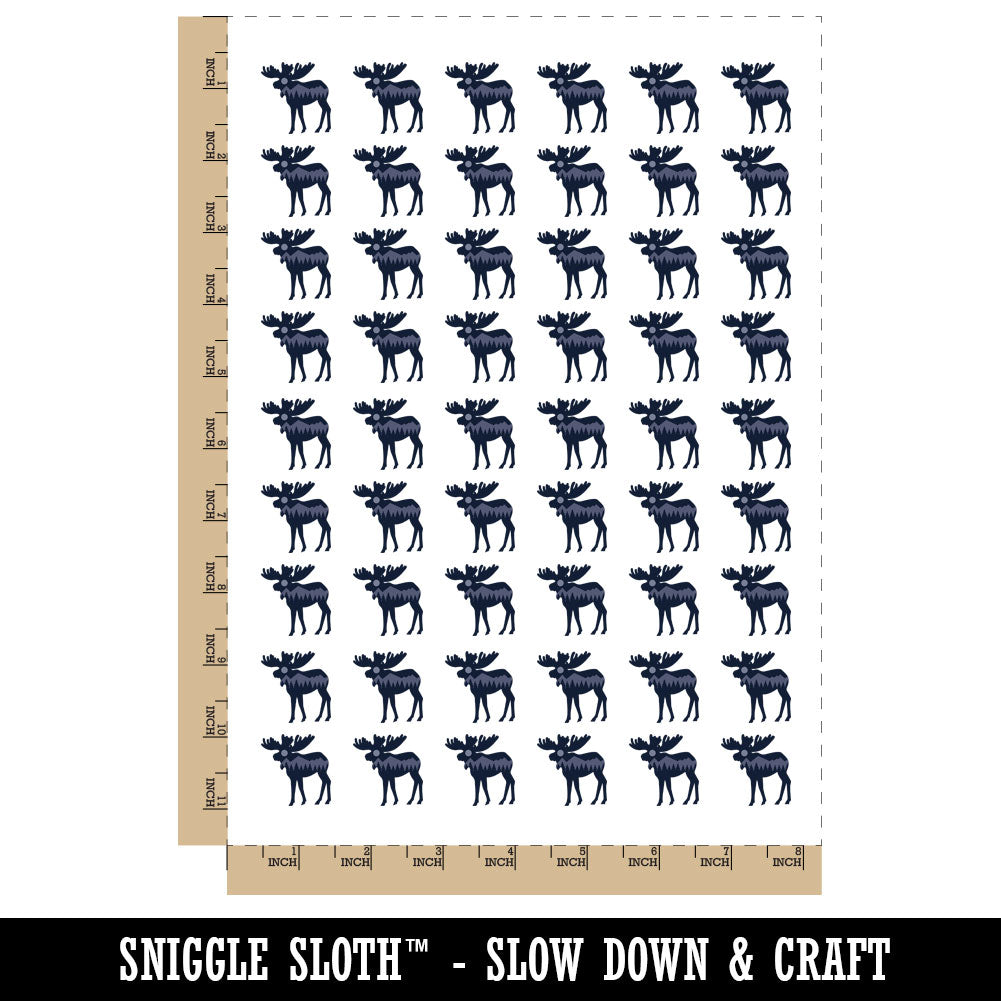 Mountain Scene Moose Silhouette Temporary Tattoo Water Resistant Fake Body Art Set Collection (1 Sheet)