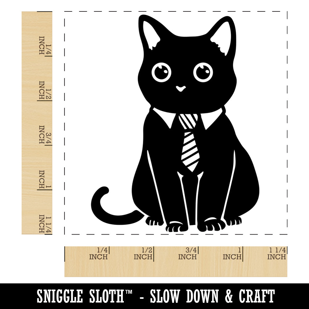 Business Cat with Tie Square Rubber Stamp for Stamping Crafting