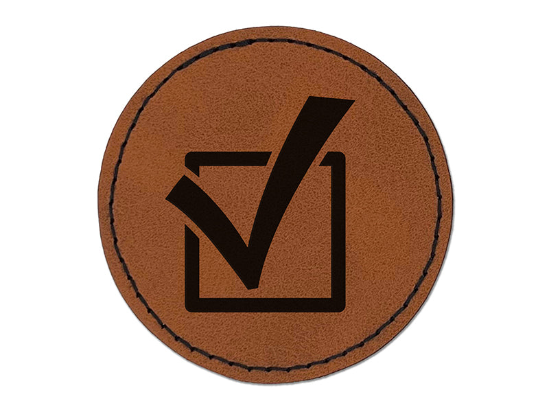Check in Checkbox Round Iron-On Engraved Faux Leather Patch Applique - 2.5"