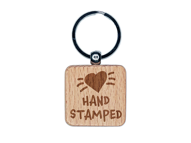 Hand Stamped Love Heart Engraved Wood Square Keychain Tag Charm