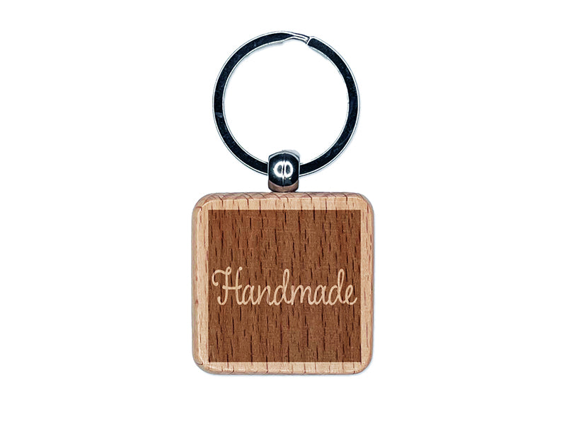 Handmade in Box Engraved Wood Square Keychain Tag Charm