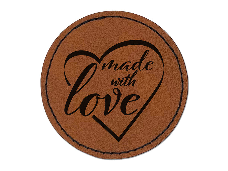Made with Love in Heart Round Iron-On Engraved Faux Leather Patch Applique - 2.5"