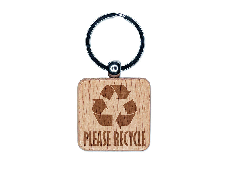 Please Recycle with Symbol Engraved Wood Square Keychain Tag Charm