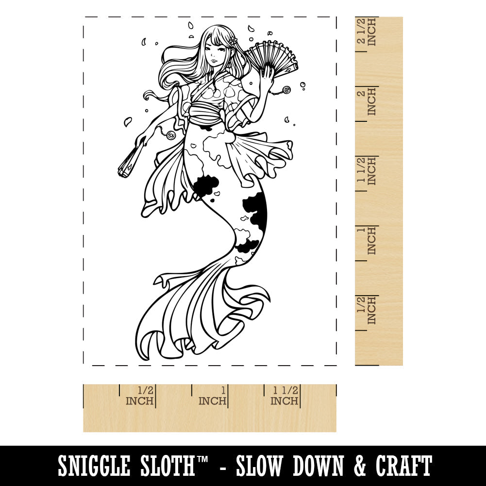 Asian Koi Mermaid in Japanese Kimono Rectangle Rubber Stamp for Stamping Crafting