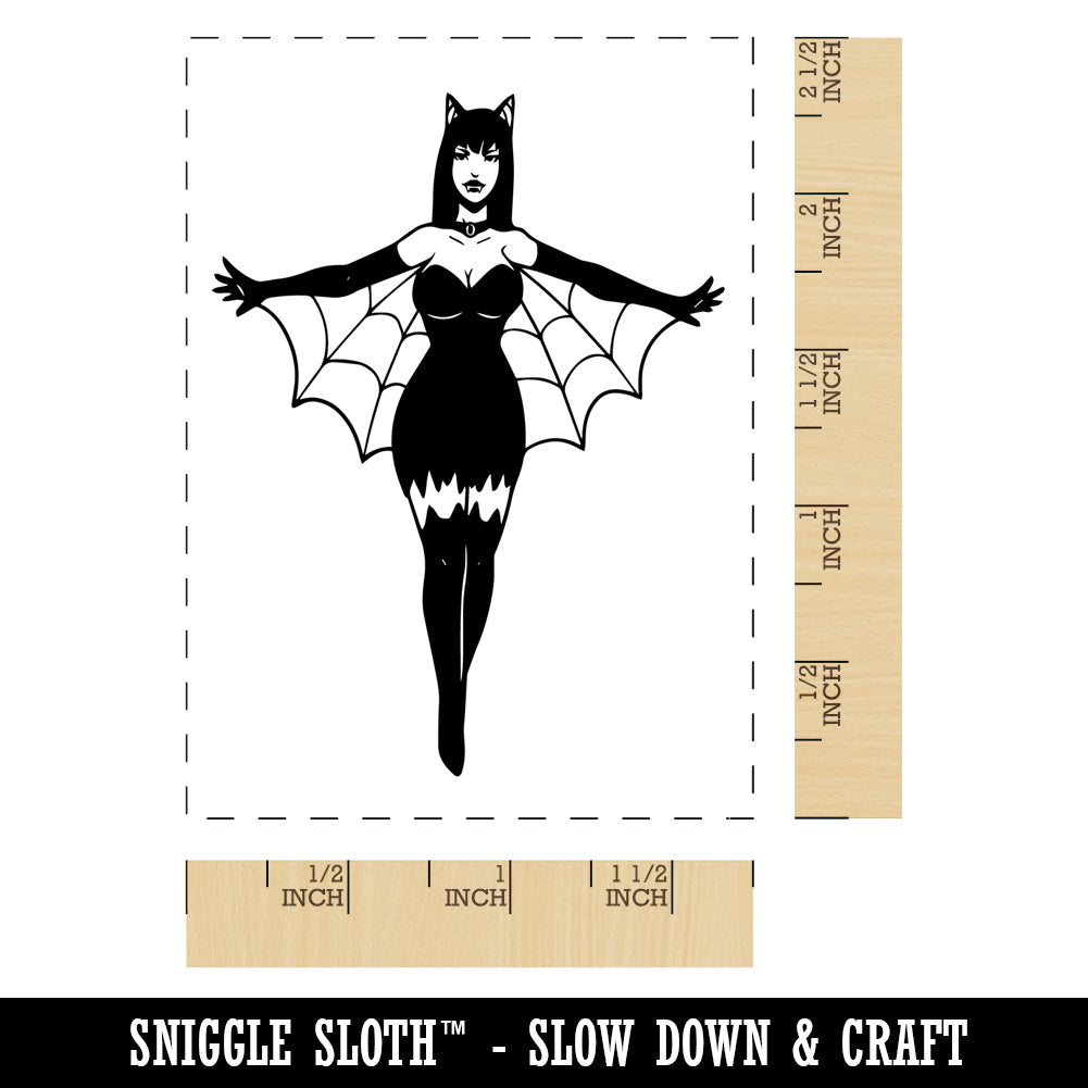 Bat Vampire Woman Goth Halloween Rectangle Rubber Stamp for Stamping Crafting