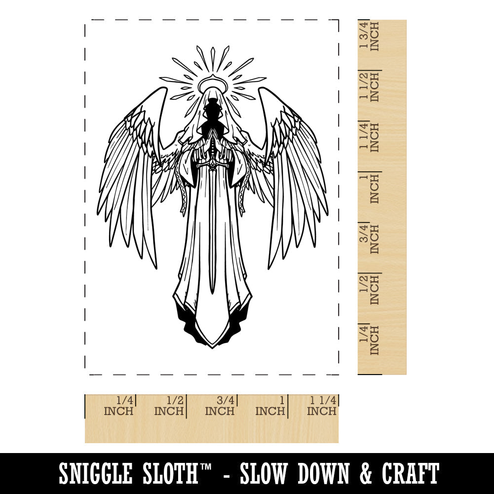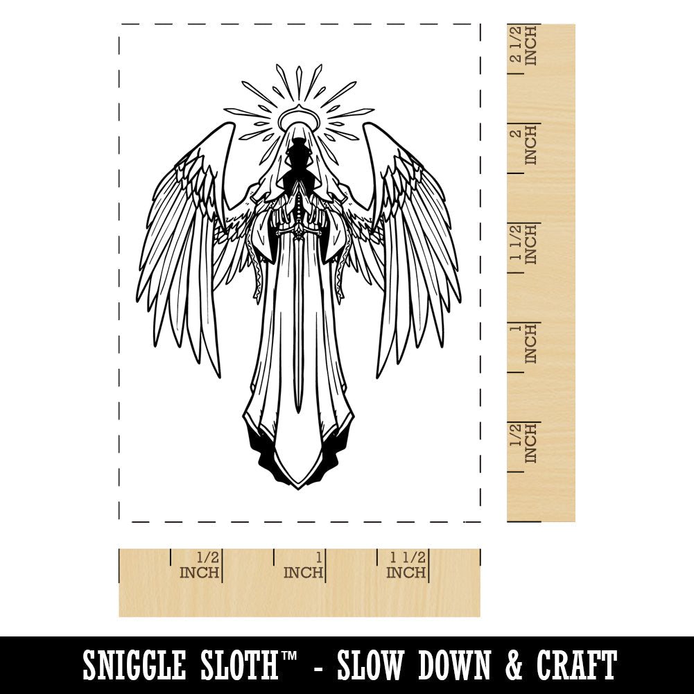 Cloaked Angel with Sword Rectangle Rubber Stamp for Stamping Crafting