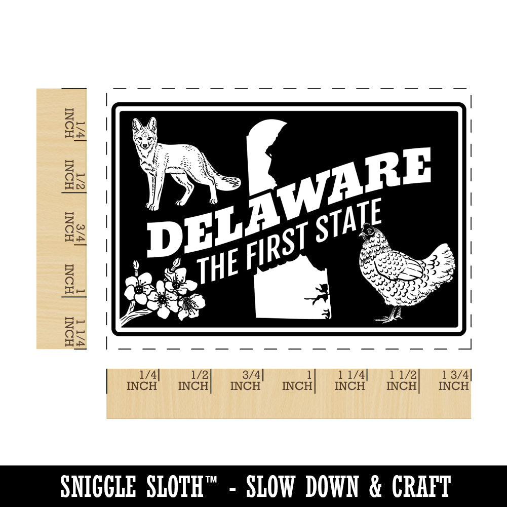 Delaware First Peach Blossom Grey Fox Blue Hen United States Rectangle Rubber Stamp for Stamping Crafting