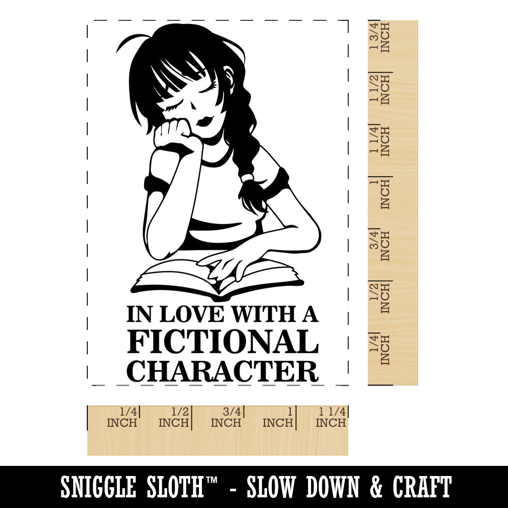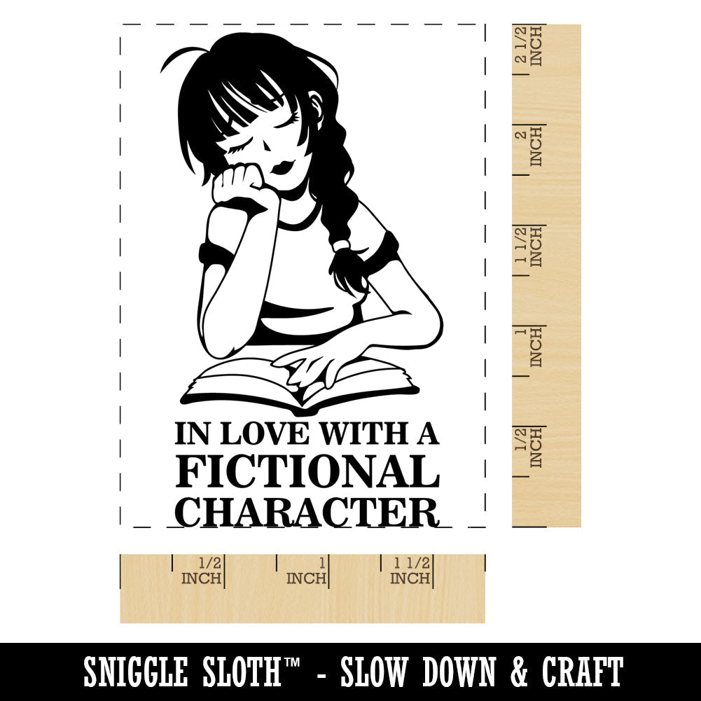 Girl In Love with Fictional Character Reading Rectangle Rubber Stamp for Stamping Crafting