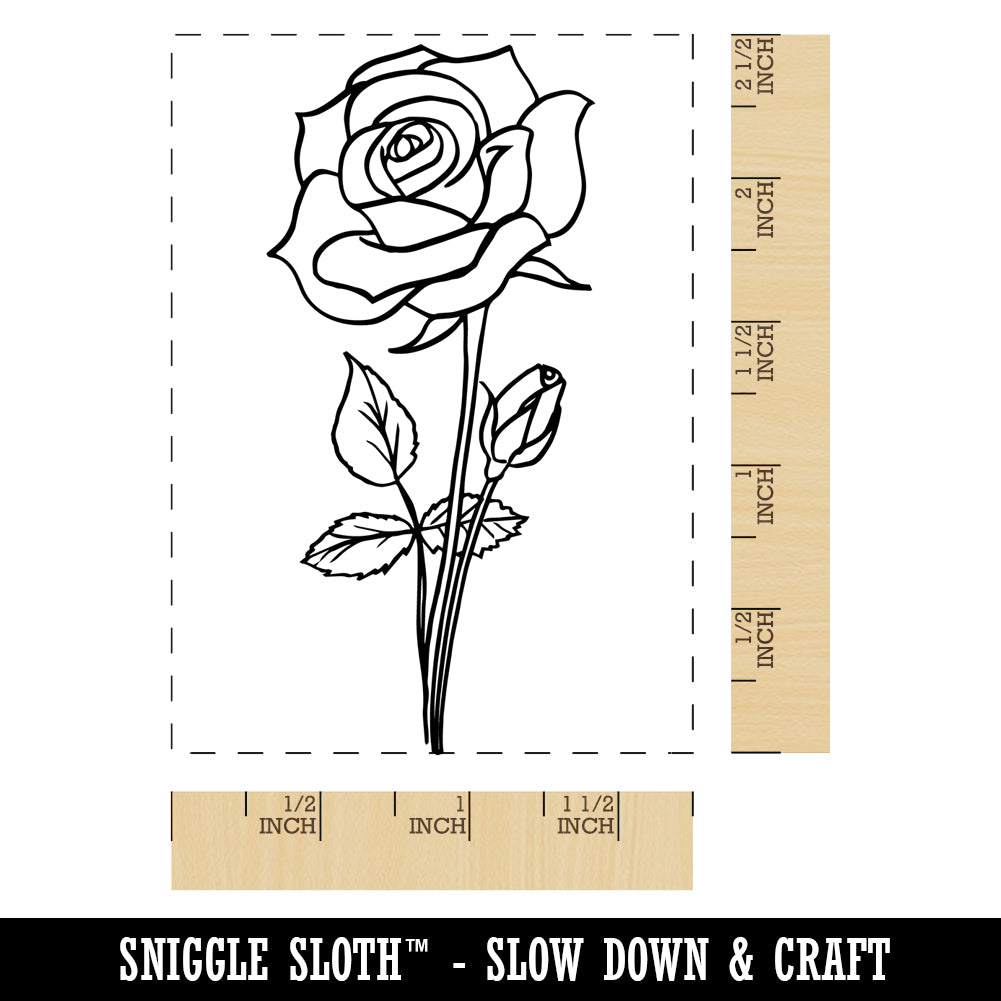 Hand Drawn Rose Flower Rectangle Rubber Stamp for Stamping Crafting