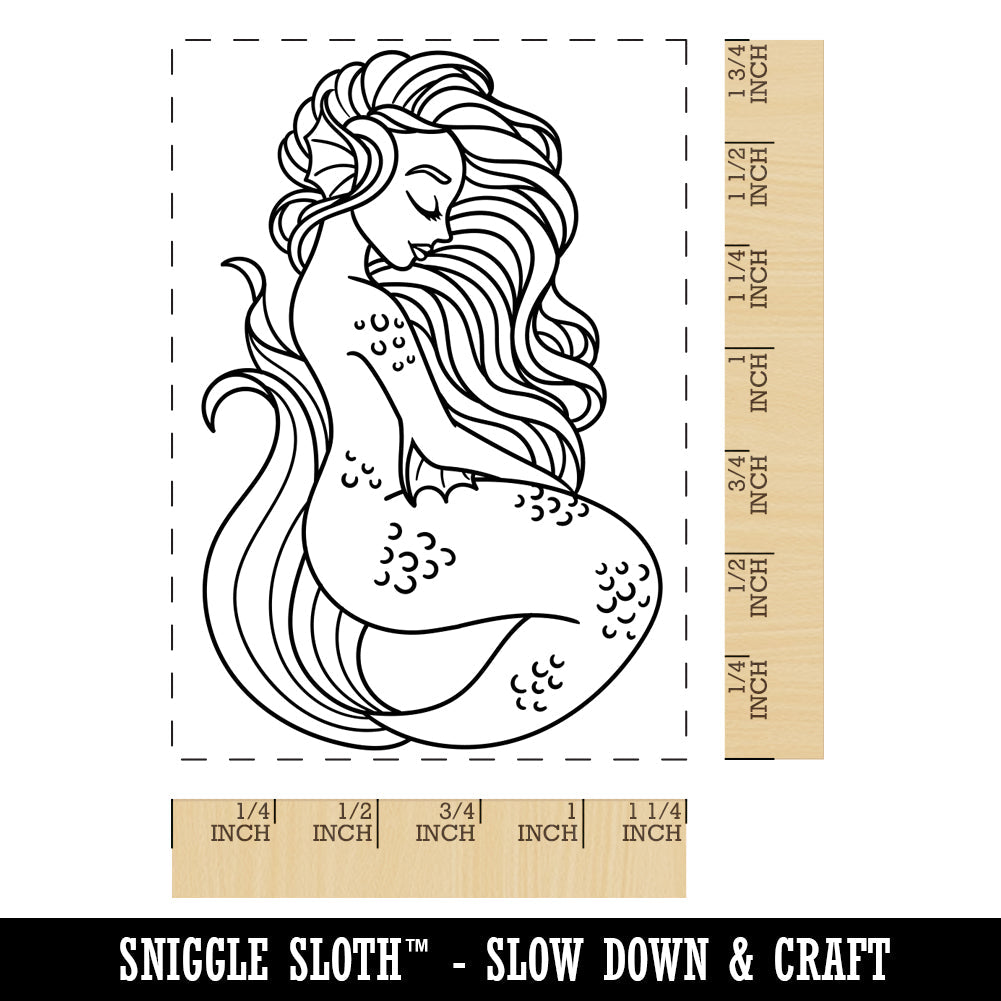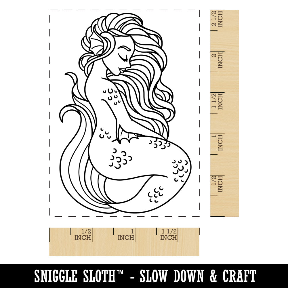 Mermaid with Wavy Hair Rectangle Rubber Stamp for Stamping Crafting