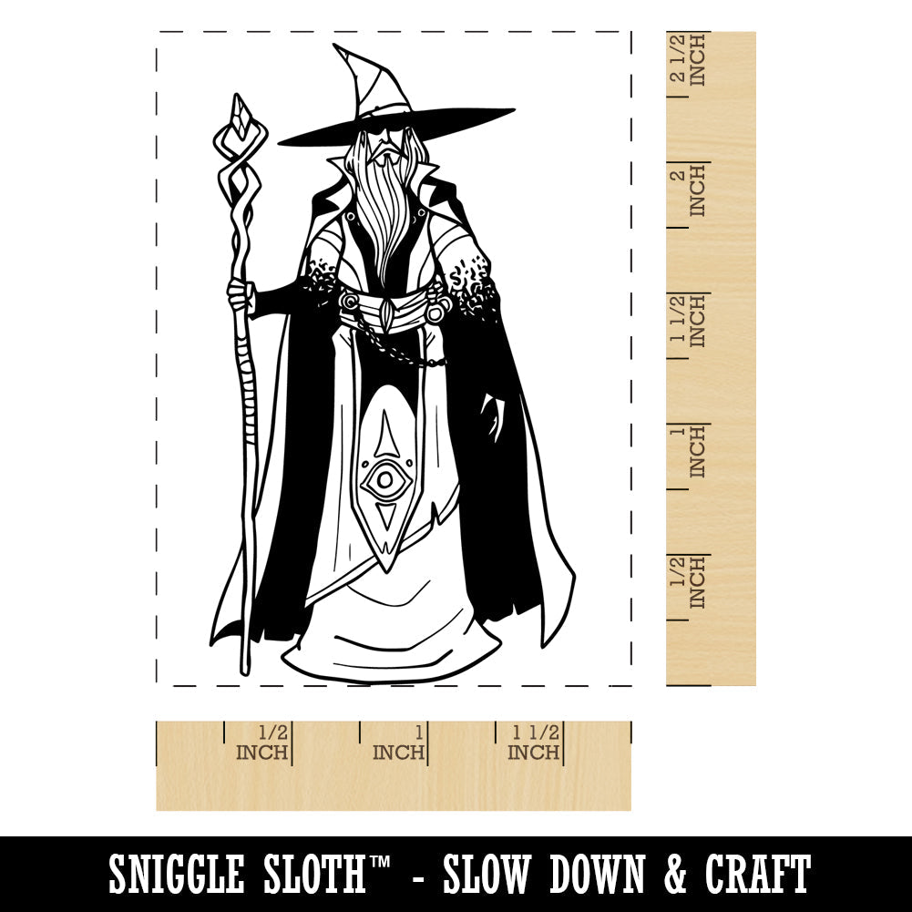 Old Wizard Mage with Cape and Staff Rectangle Rubber Stamp for Stamping Crafting