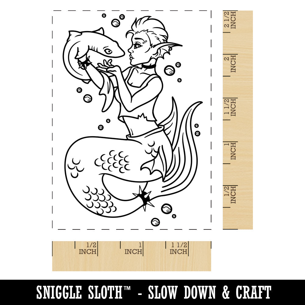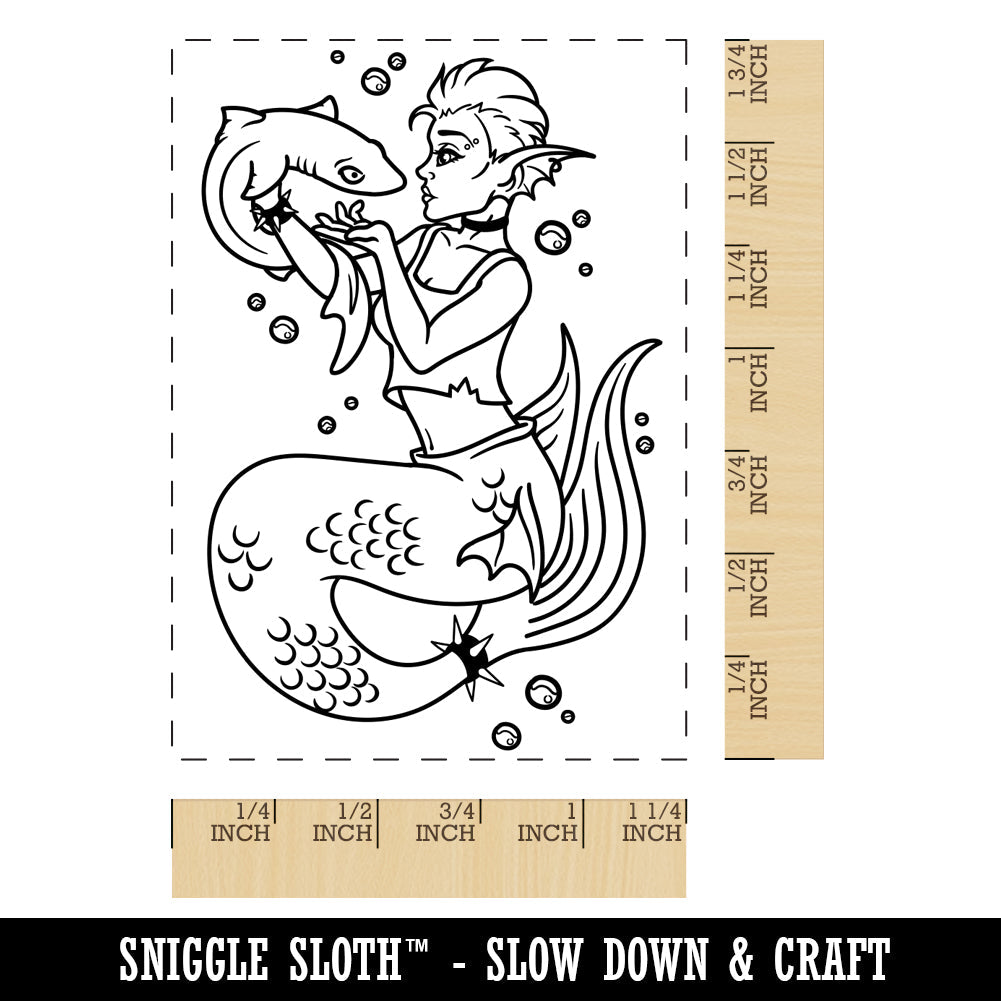 Punk Mermaid with Dogfish Rectangle Rubber Stamp for Stamping Crafting