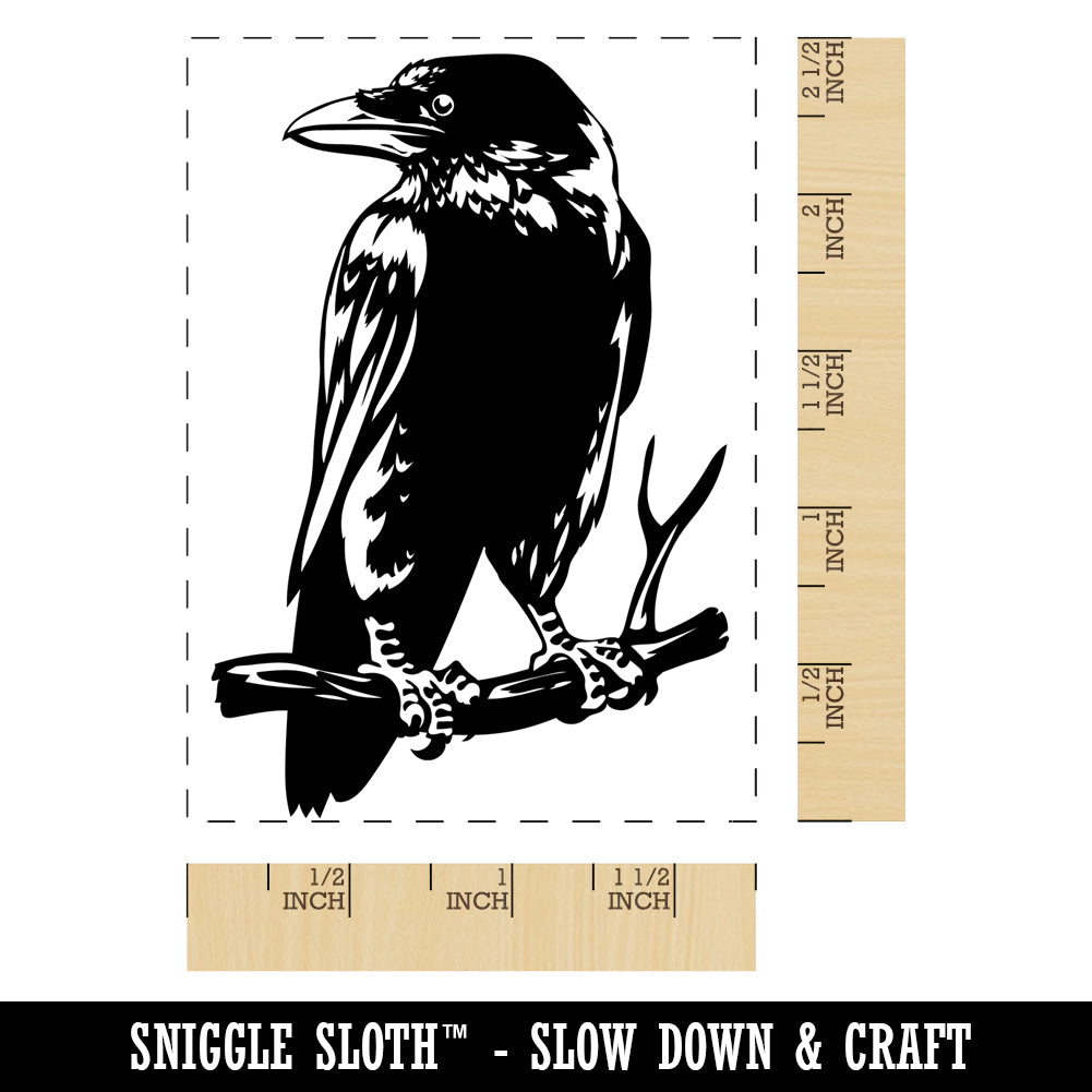 Wise Black Raven Crow Perched on Branch Rectangle Rubber Stamp for Stamping Crafting