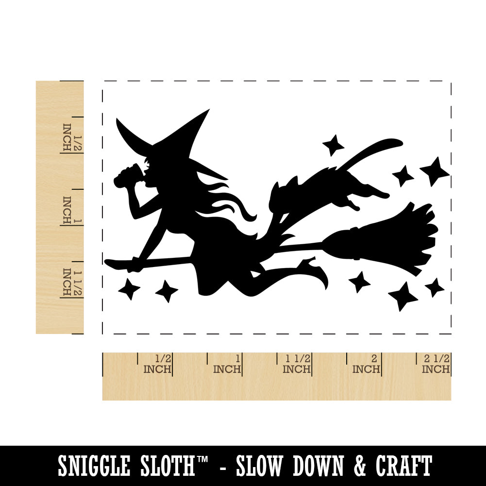 Witch On Broom Halloween Coffee Cat Rectangle Rubber Stamp for Stamping Crafting