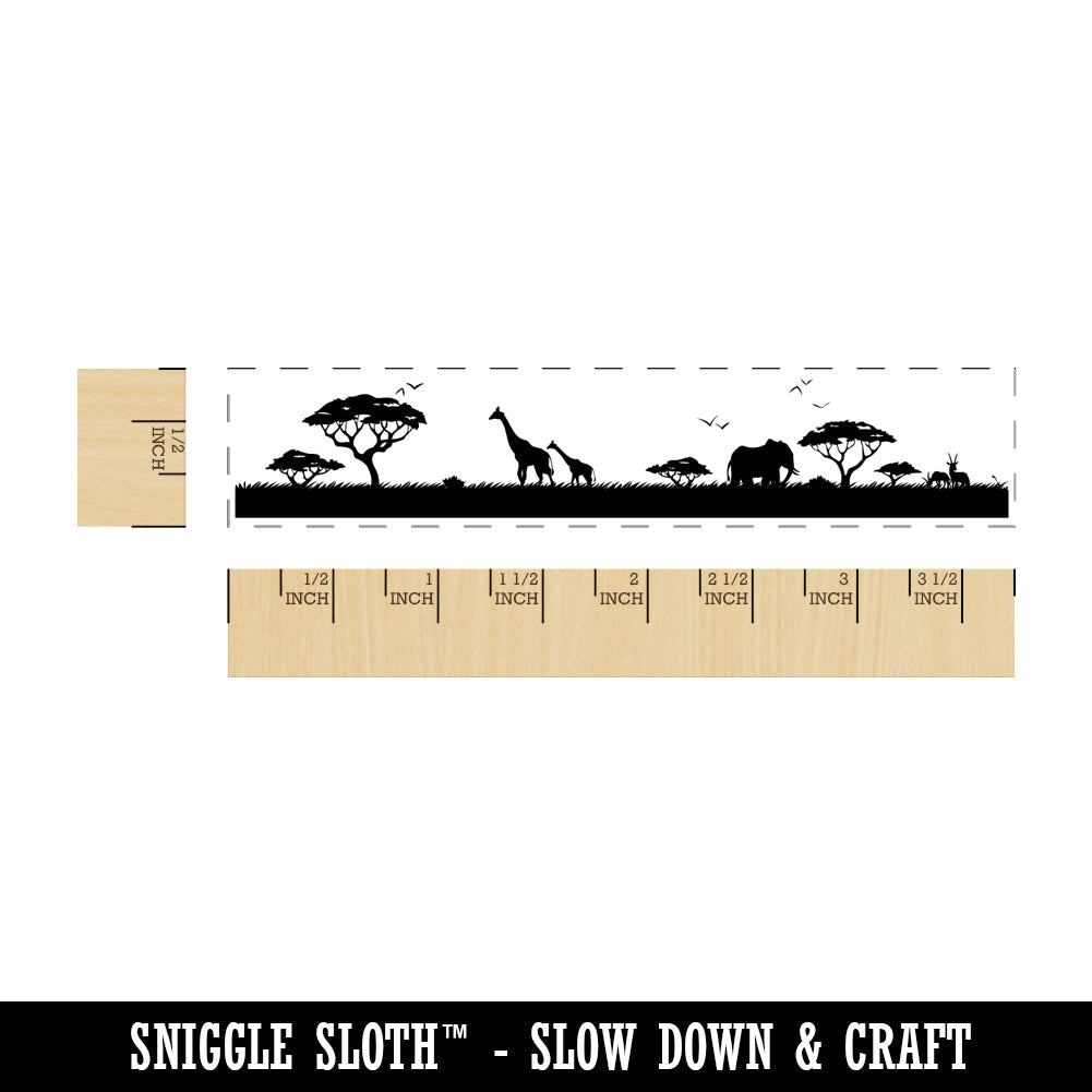 African Savanna Wildlife Giraffe Elephant Impala Rectangle Rubber Stamp for Stamping Crafting
