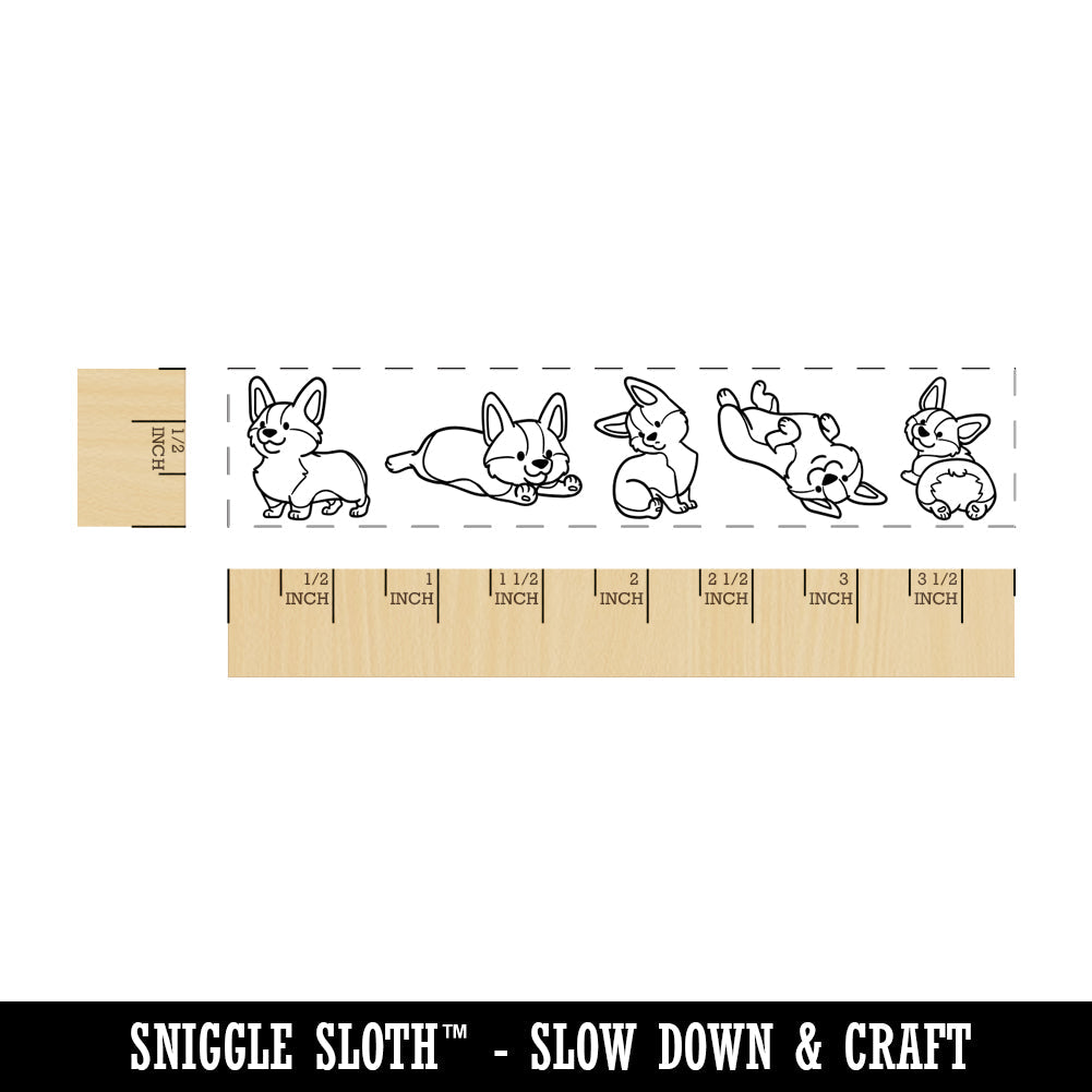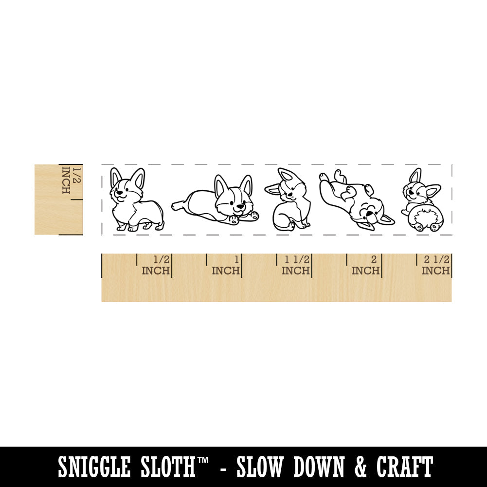 Chibi Pembroke Welsh Corgi Dog Border Rectangle Rubber Stamp for Stamping Crafting