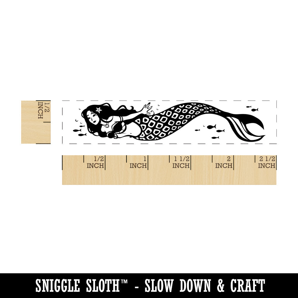 Elegant Mermaid Swimming in Ocean with Fish Rectangle Rubber Stamp for Stamping Crafting