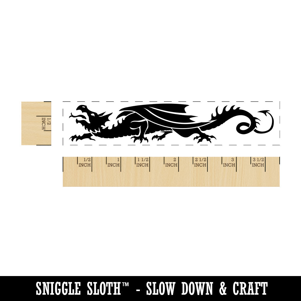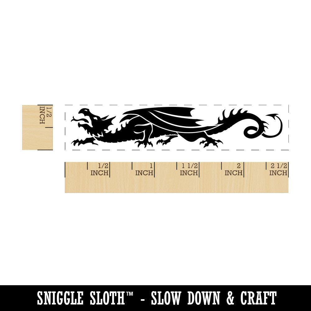 European Style Heraldic Winged Dragon Wyvern Silhouette Rectangle Rubber Stamp for Stamping Crafting