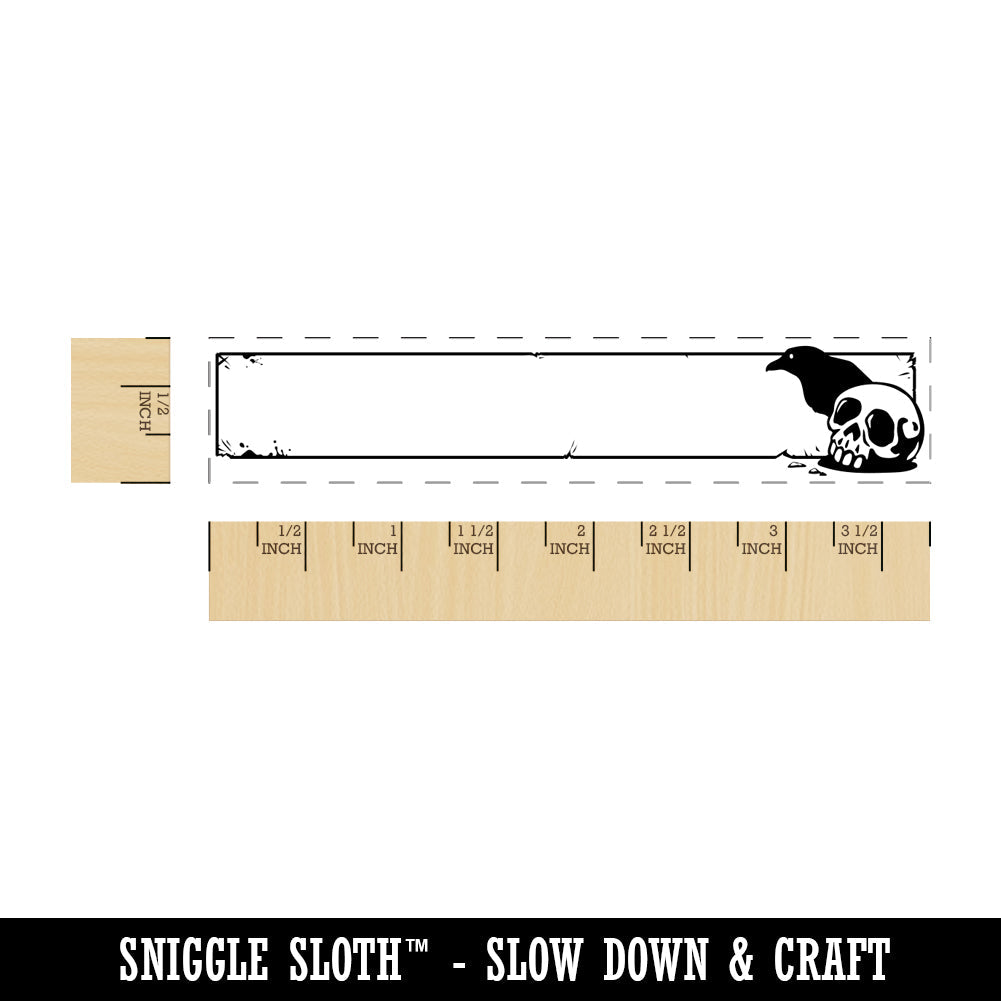 Gothic Raven and Skull Spooky Blank Banner Rectangle Rubber Stamp for Stamping Crafting