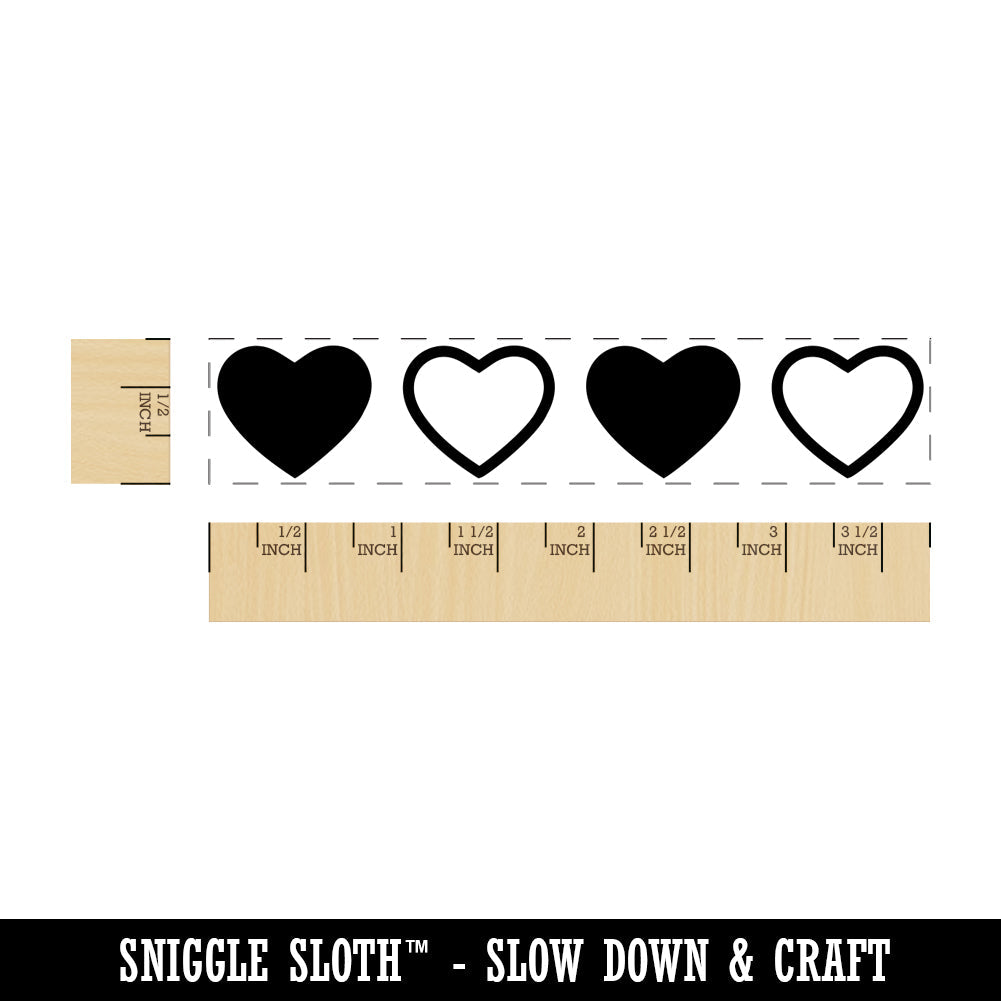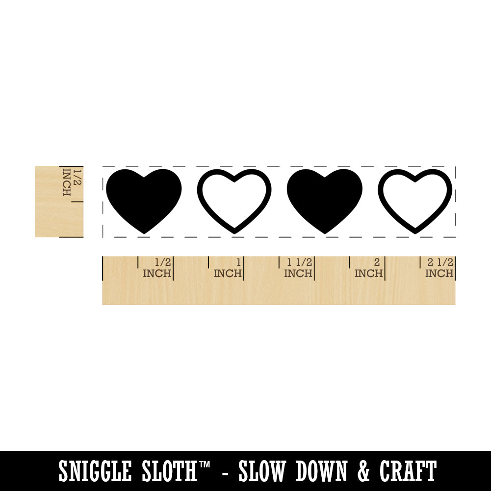 Heart Solid and Outline Border Rectangle Rubber Stamp for Stamping Crafting