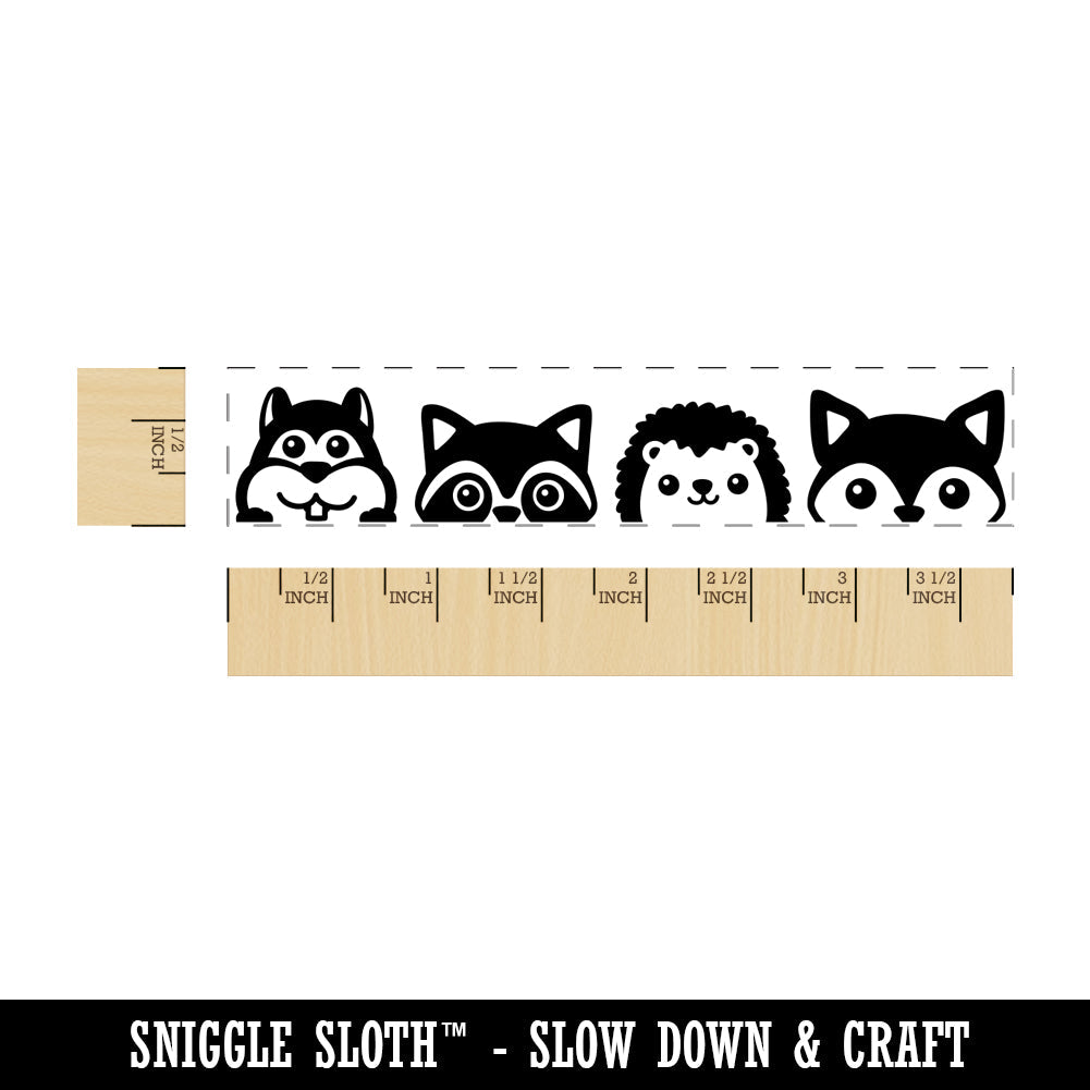 Peeking Woodland Creatures Chipmunk Raccoon Hedgehog Fox Rectangle Rubber Stamp for Stamping Crafting
