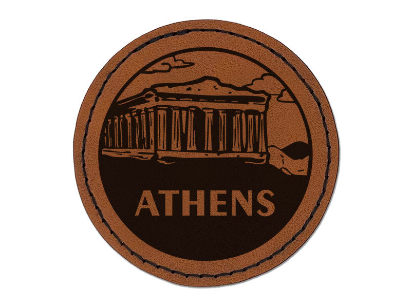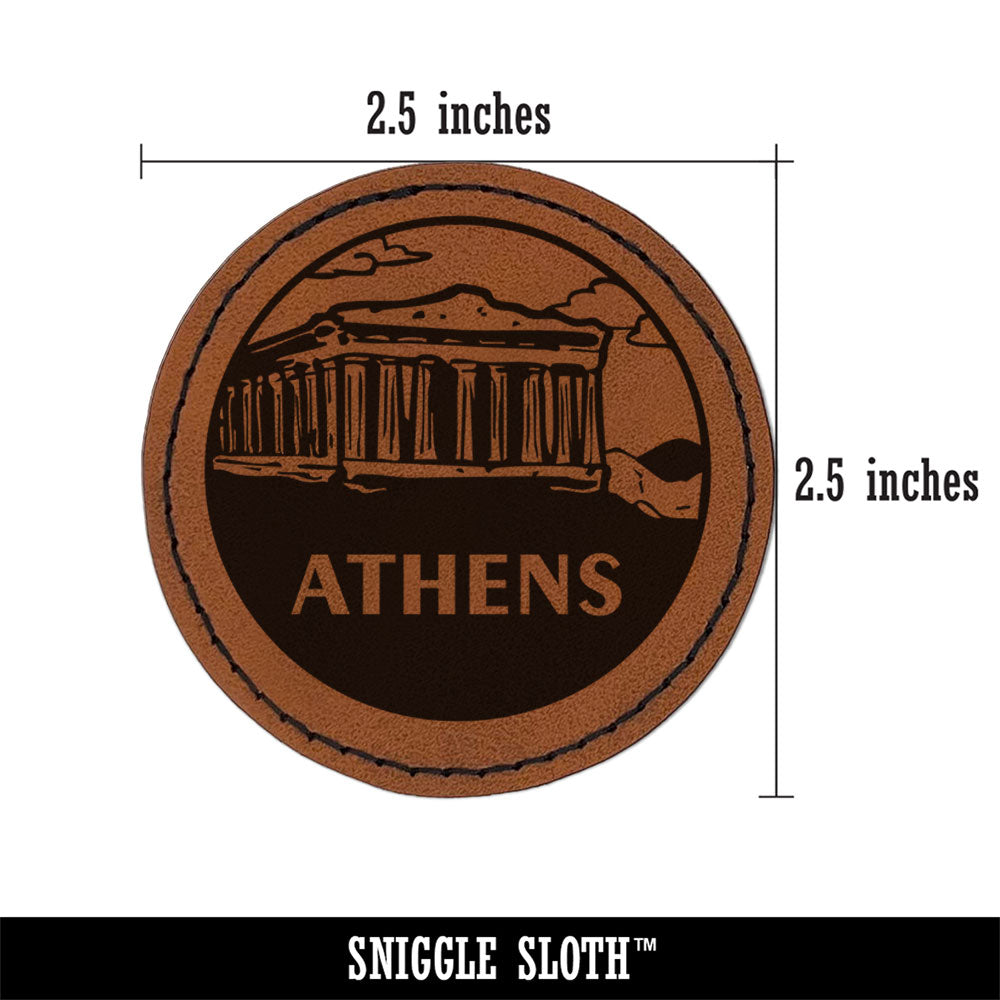 Acropolis Athens Greece Landmark Destination Circle Round Iron-On Engraved Faux Leather Patch Applique - 2.5 Inch