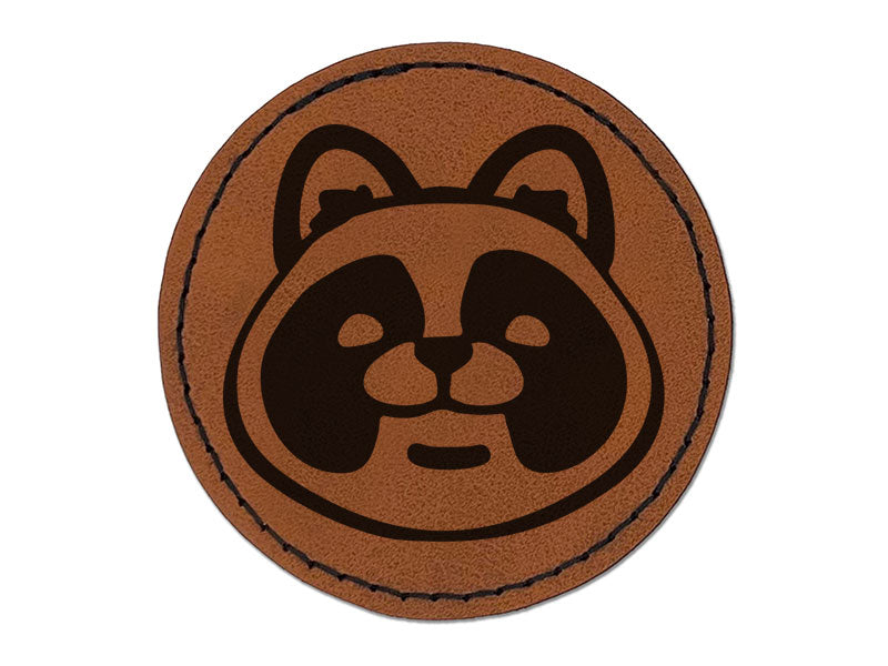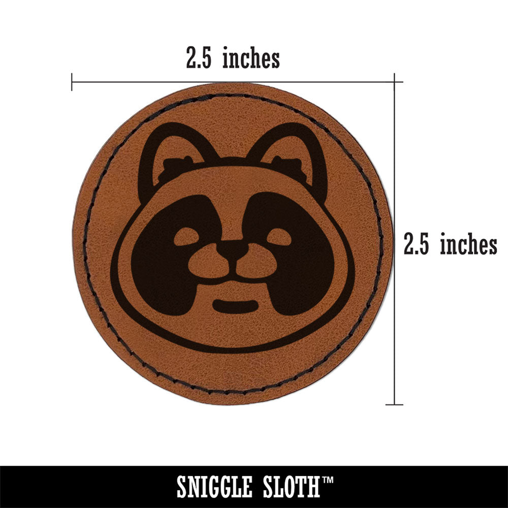 Cartoon Tanuki Head Japanese Raccoon Dog Round Iron-On Engraved Faux Leather Patch Applique - 2.5 Inch