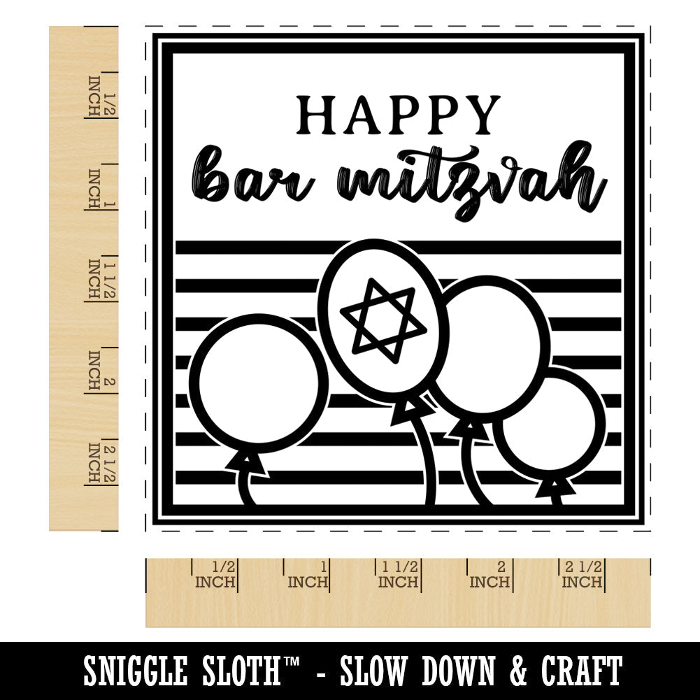 Happy Bar Mitzvah Fun Stripes and Balloons 13th Birthday for Jewish Boy Square Rubber Stamp for Stamping Crafting
