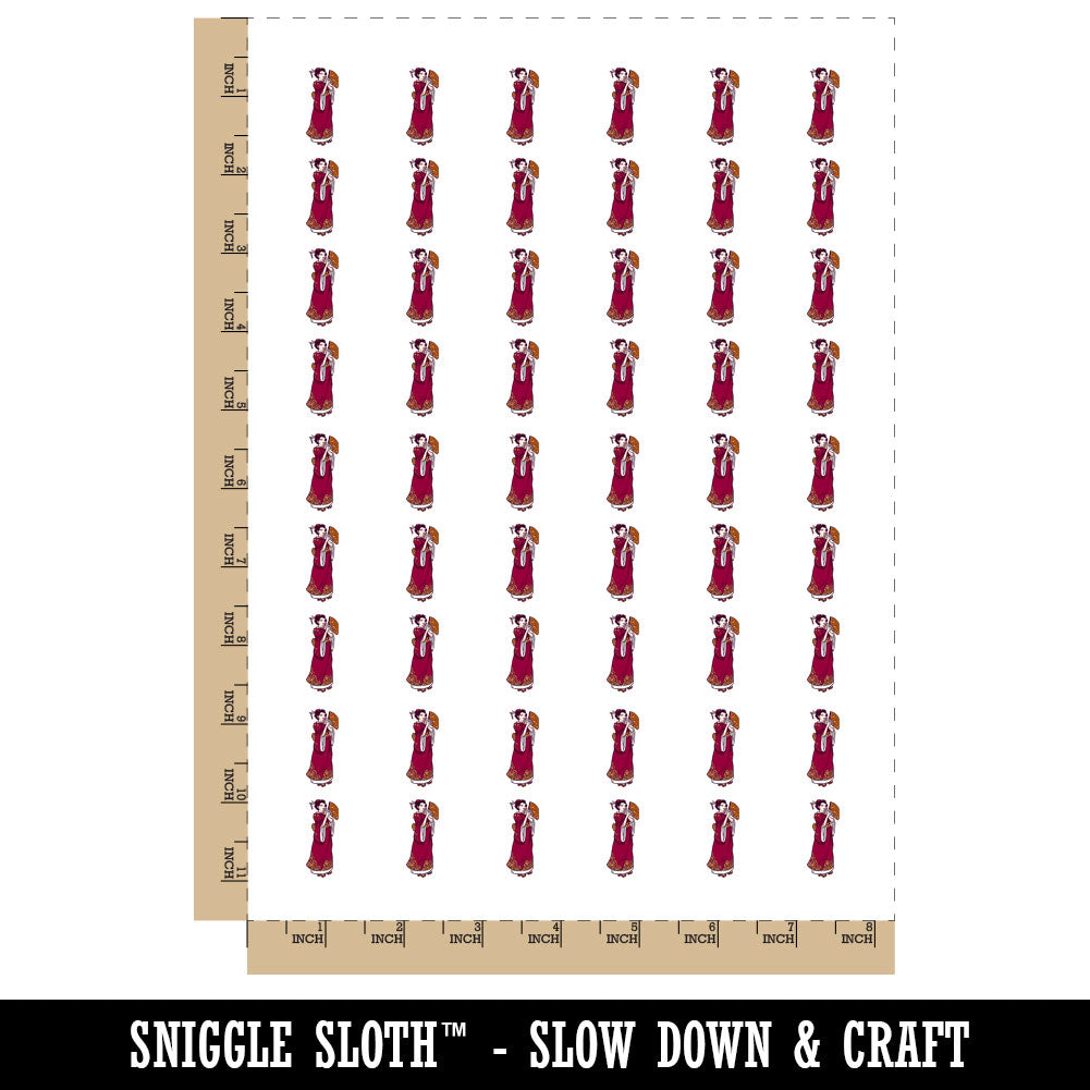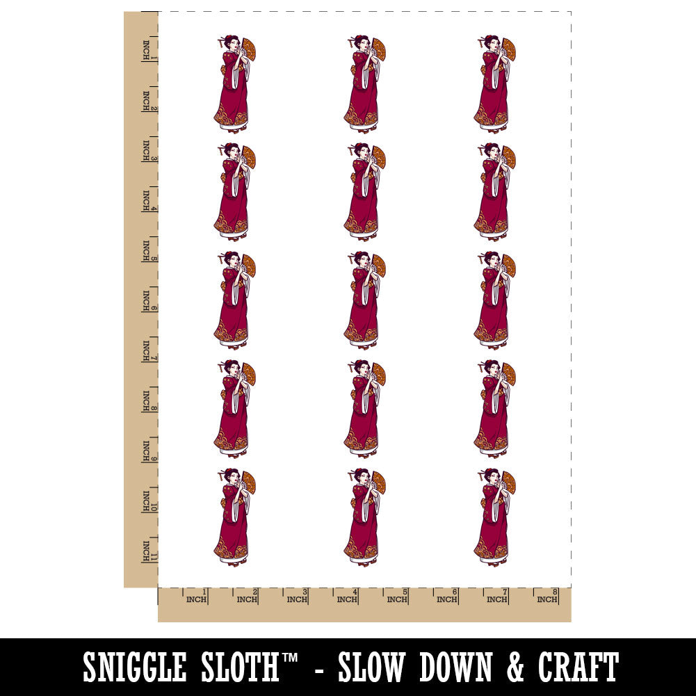 Japanese Geisha Woman Kimono Fan Temporary Tattoo Water Resistant Fake Body Art Set Collection (1 Sheet)