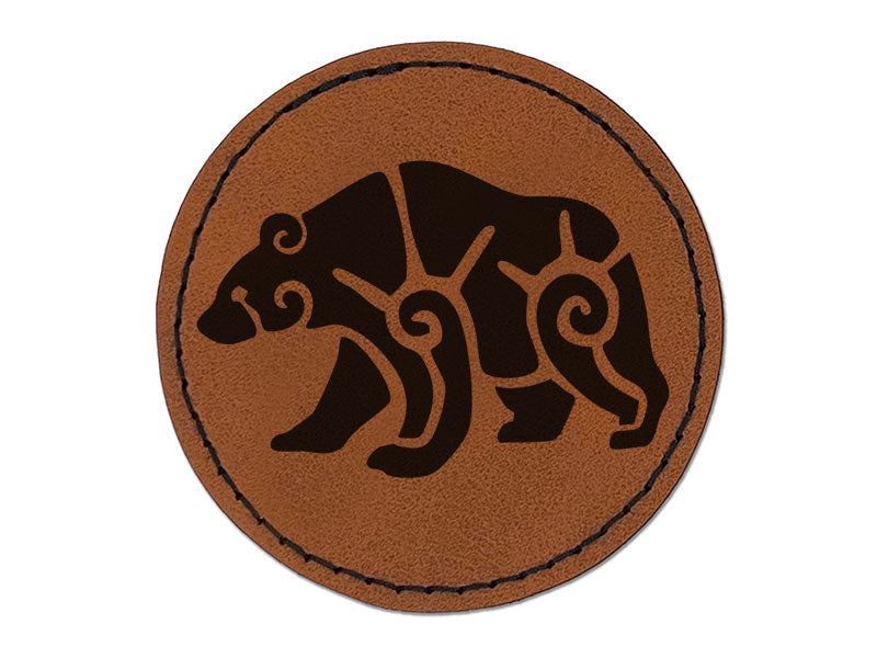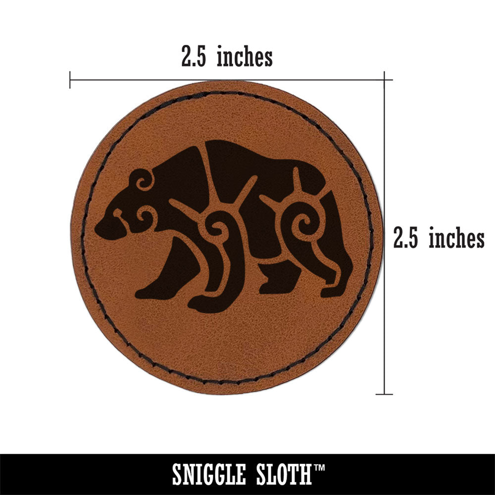 Tribal Southwestern Bear Sun Swirls Round Iron-On Engraved Faux Leather Patch Applique - 2.5 Inch