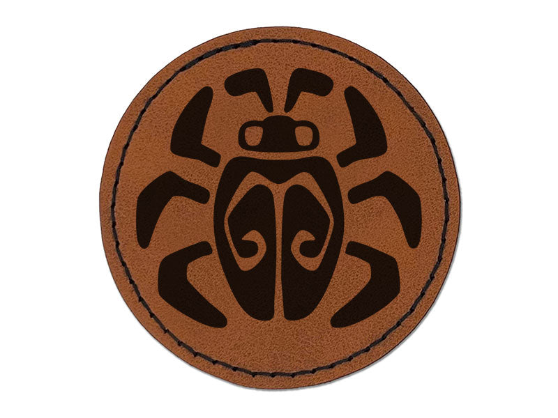 Tribal Southwestern Bug Insect Beetle Round Iron-On Engraved Faux Leather Patch Applique - 2.5 Inch