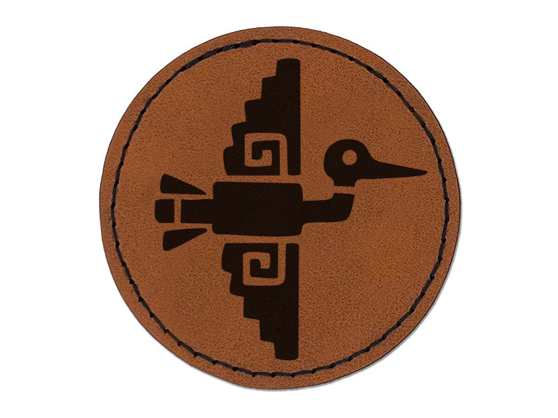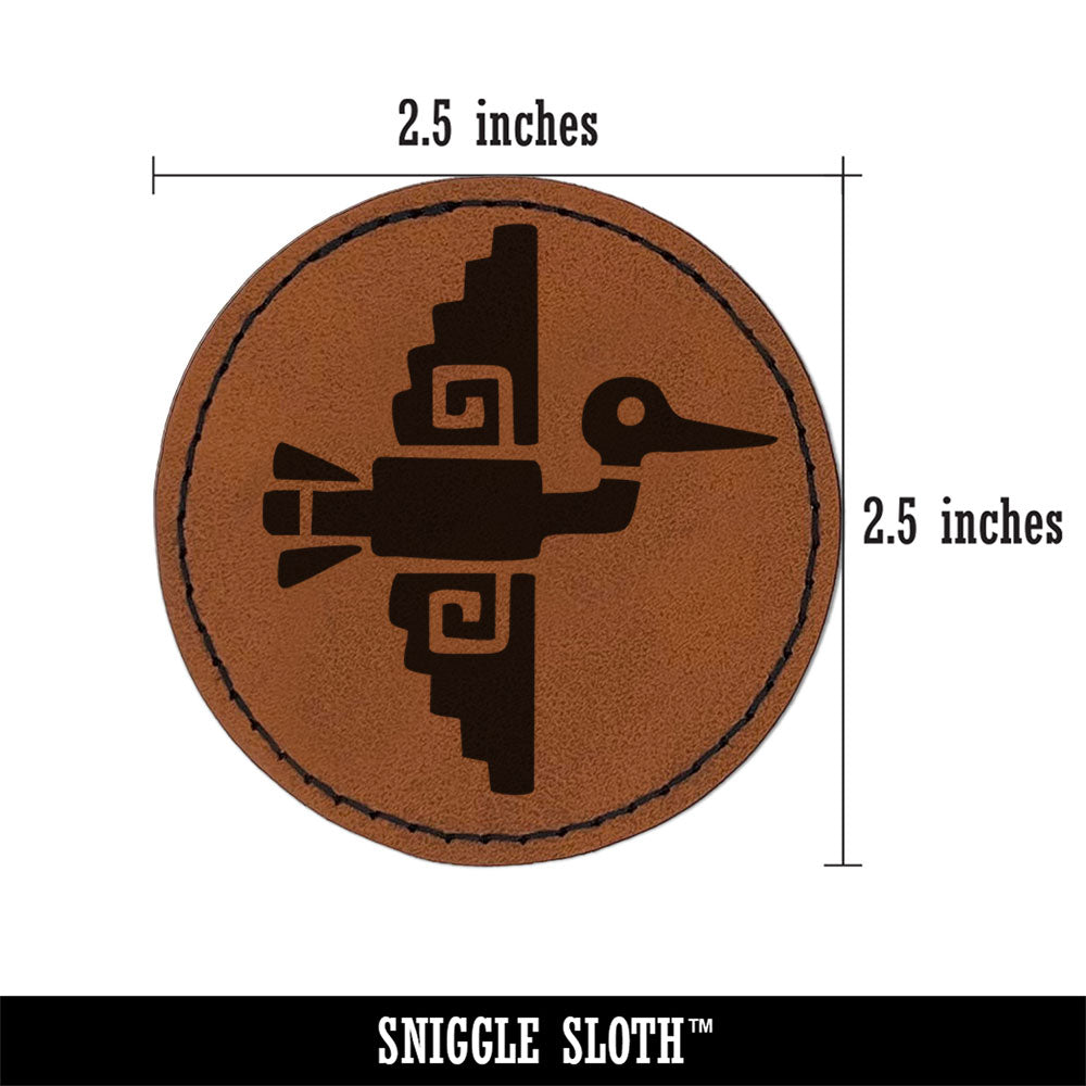 Tribal Southwestern Crane Bird Flying Round Iron-On Engraved Faux Leather Patch Applique - 2.5 Inch
