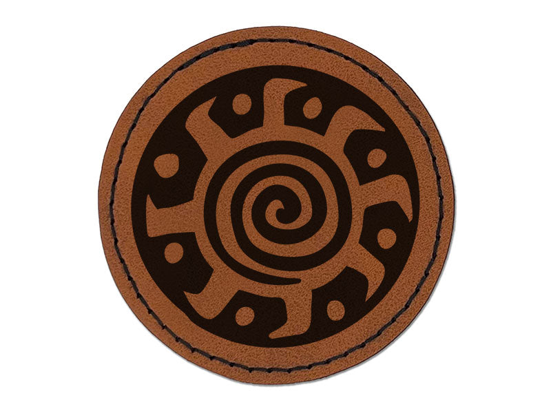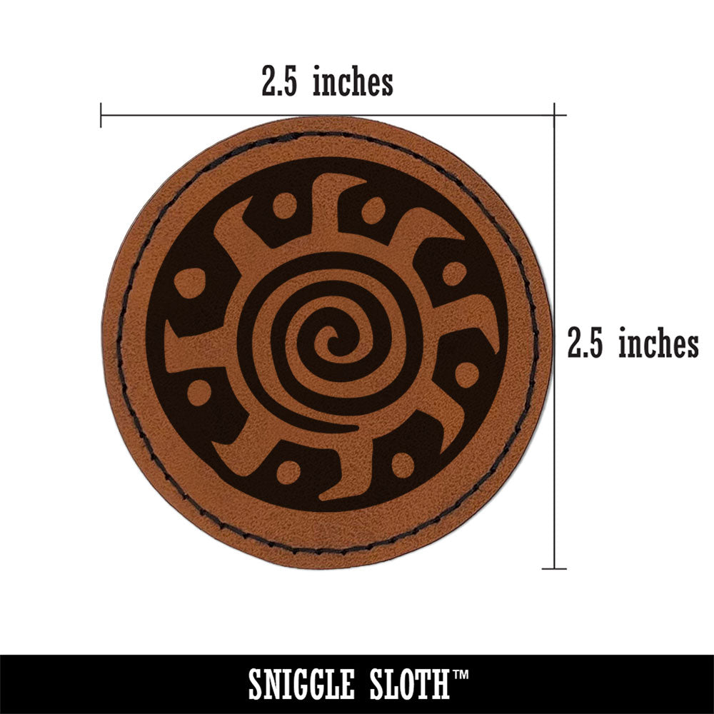 Tribal Southwestern Sun Star Rays Swirl Round Iron-On Engraved Faux Leather Patch Applique - 2.5 Inch
