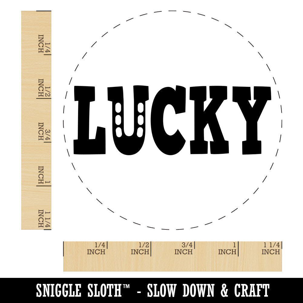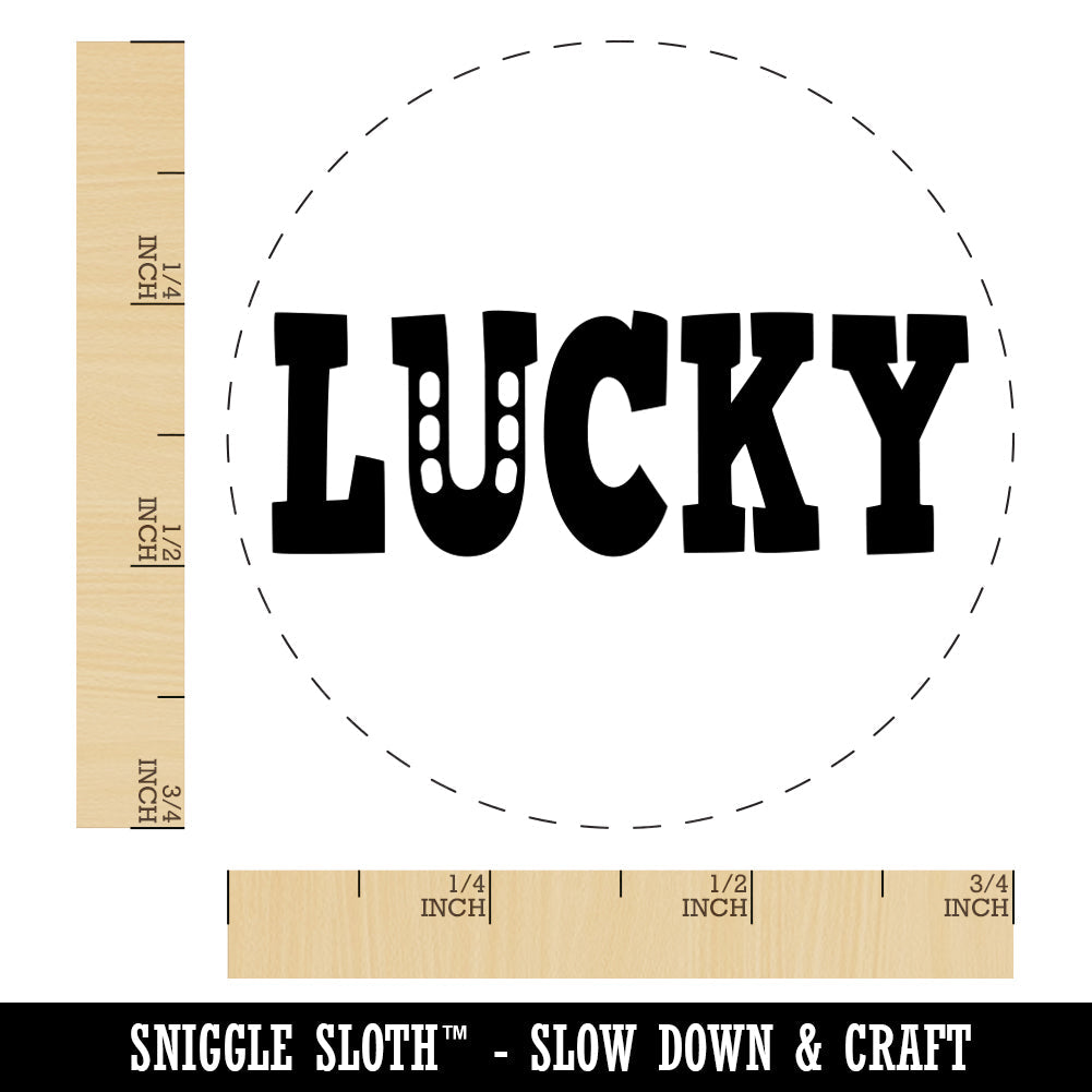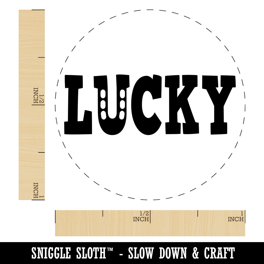 Lucky with Horseshoe Fun Text Rubber Stamp for Stamping Crafting Planners