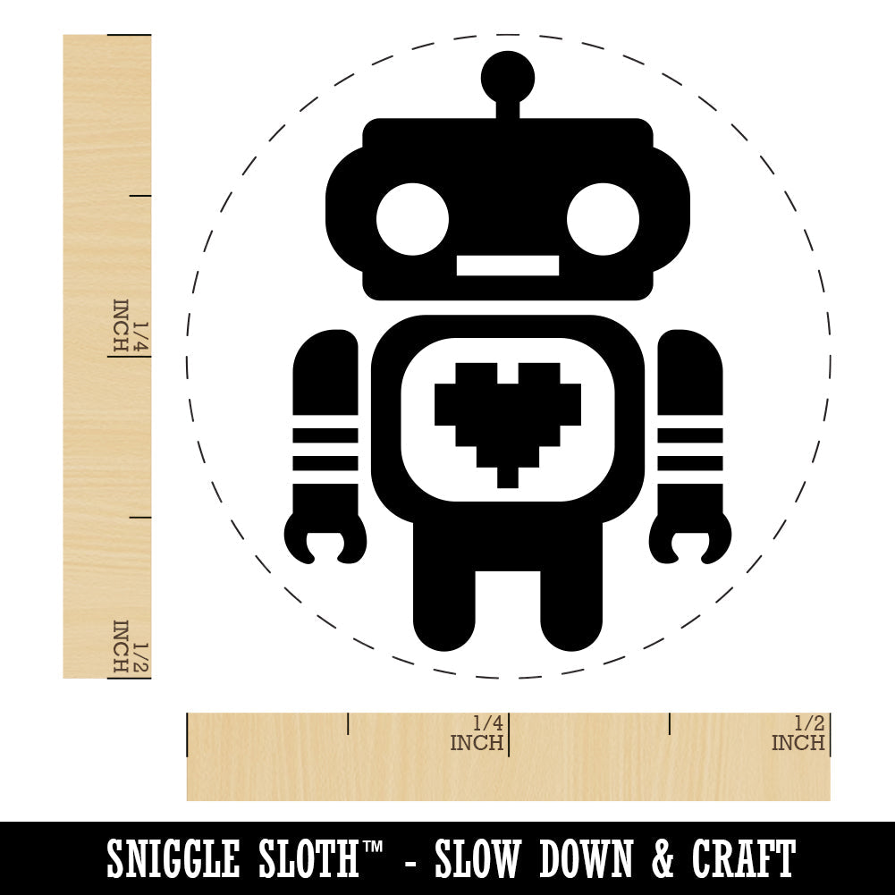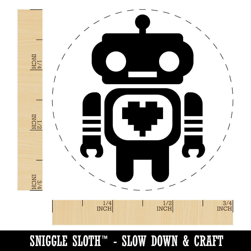 Cute Little Robot with a Heart Rubber Stamp for Stamping Crafting Planners