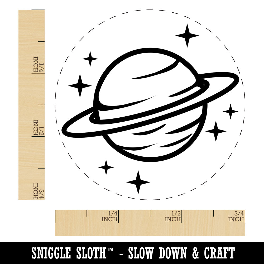 Saturn Planet with Rings and Stars Rubber Stamp for Stamping Crafting Planners