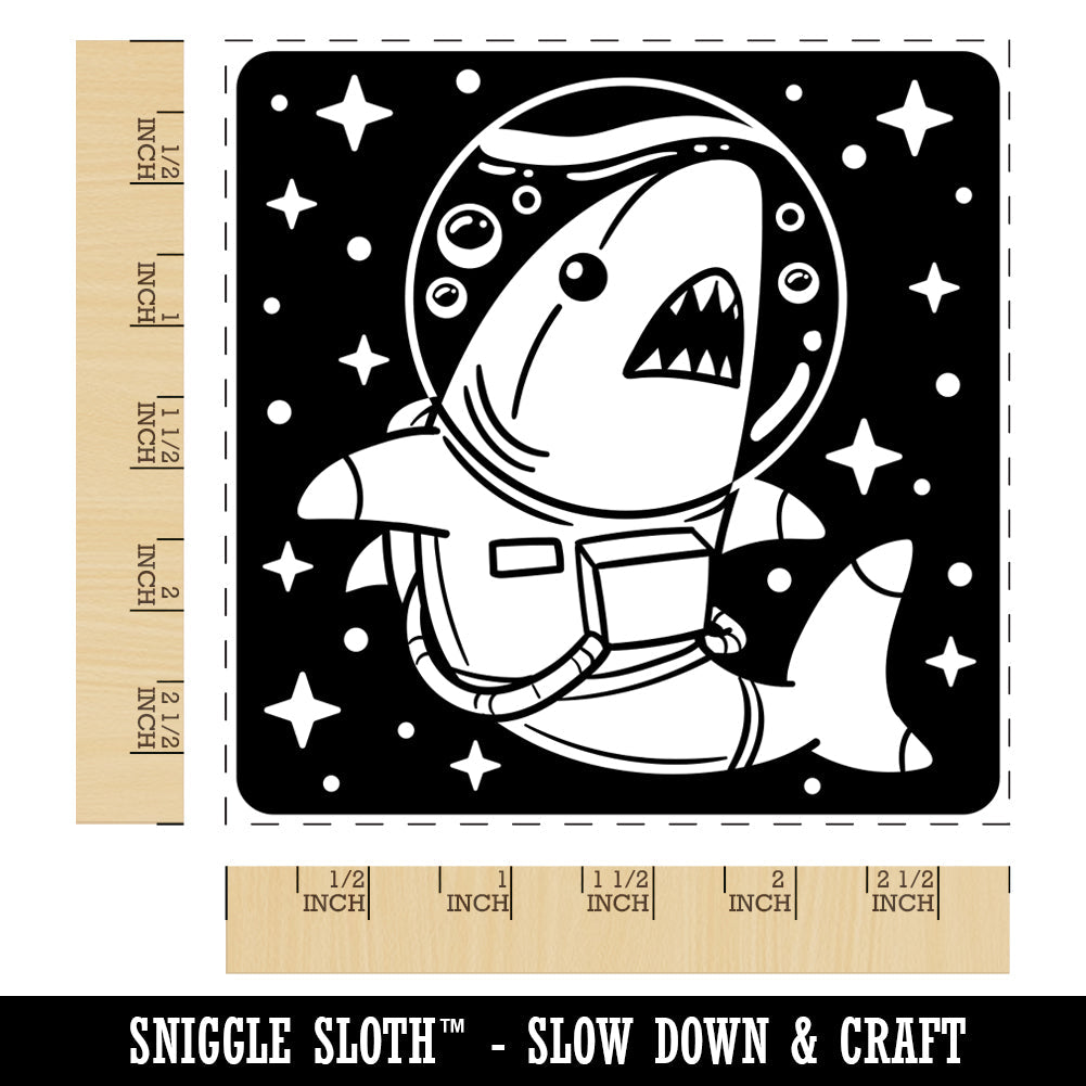 Shark Astronaut Floating in Space Square Rubber Stamp for Stamping Crafting