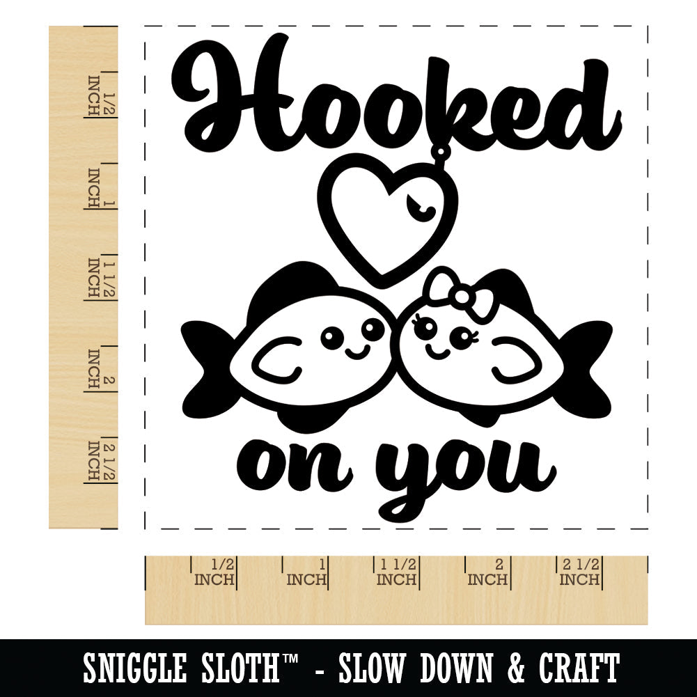 Hooked On You Fish Love Anniversary Valentine's Day Square Rubber Stamp for Stamping Crafting