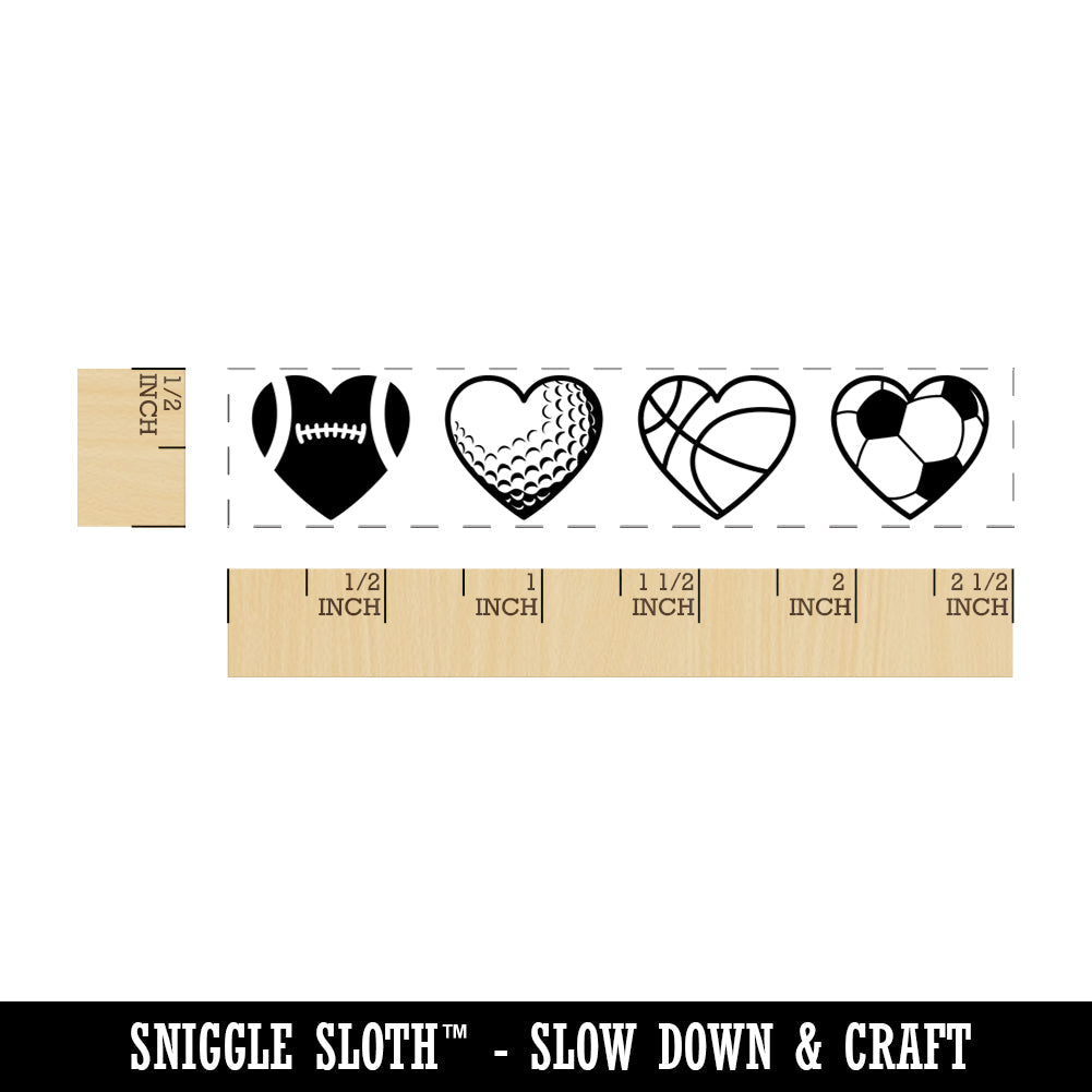 Heart Shaped Sports Balls Border Football Golf Basketball Soccer Rectangle Rubber Stamp for Stamping Crafting