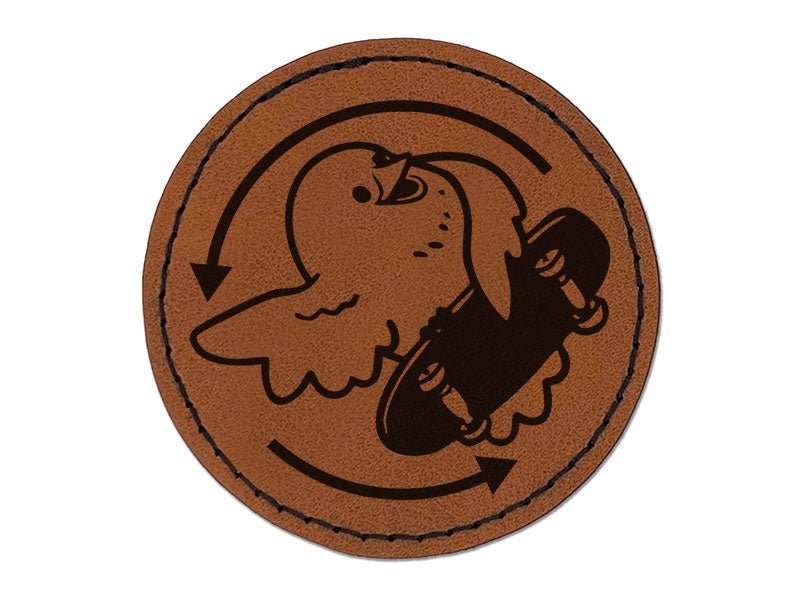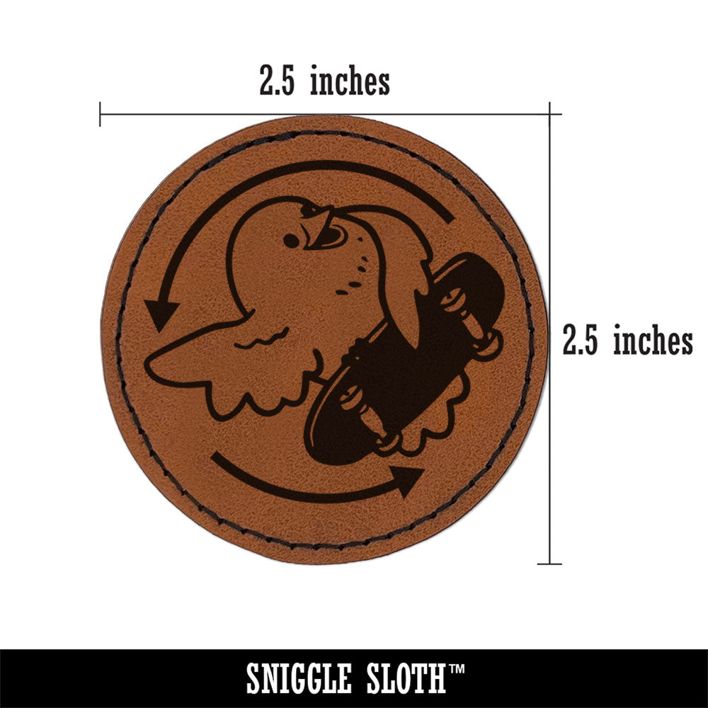Flipping the Bird Funny Skateboard Silly Round Iron-On Engraved Faux Leather Patch Applique - 2.5 Inch